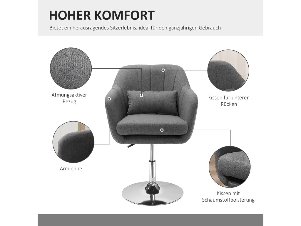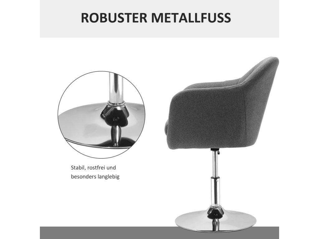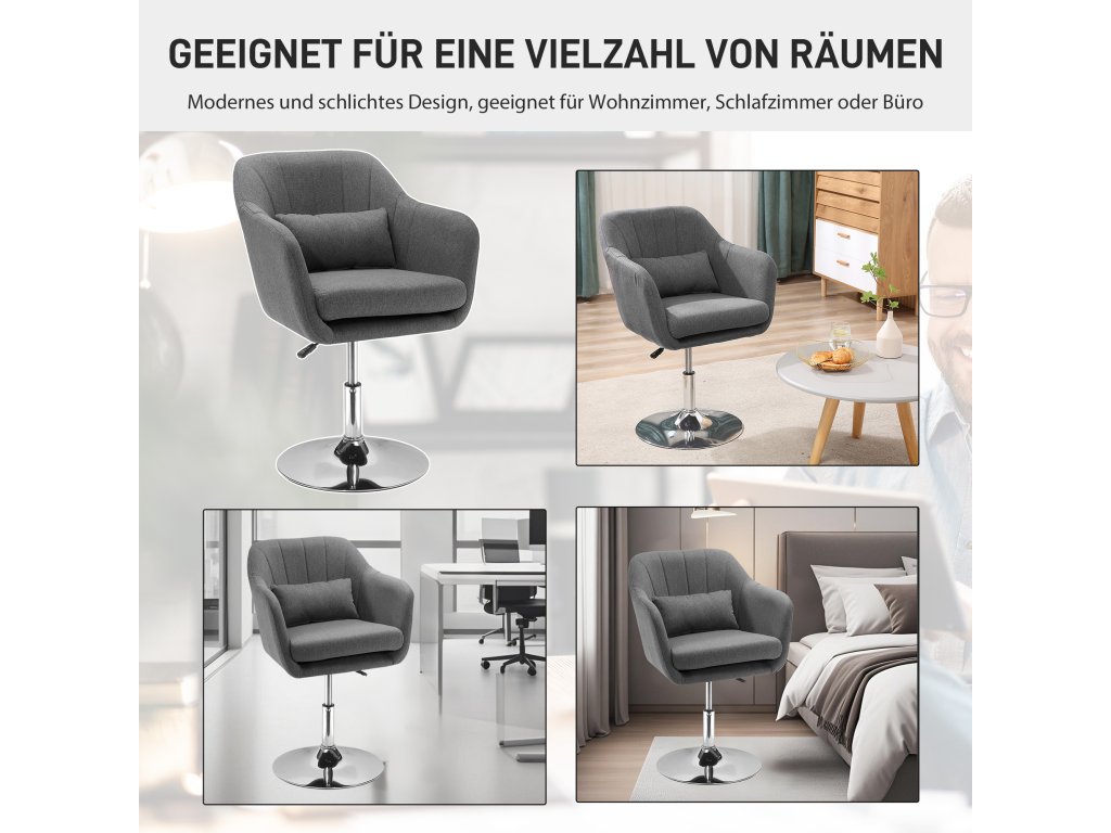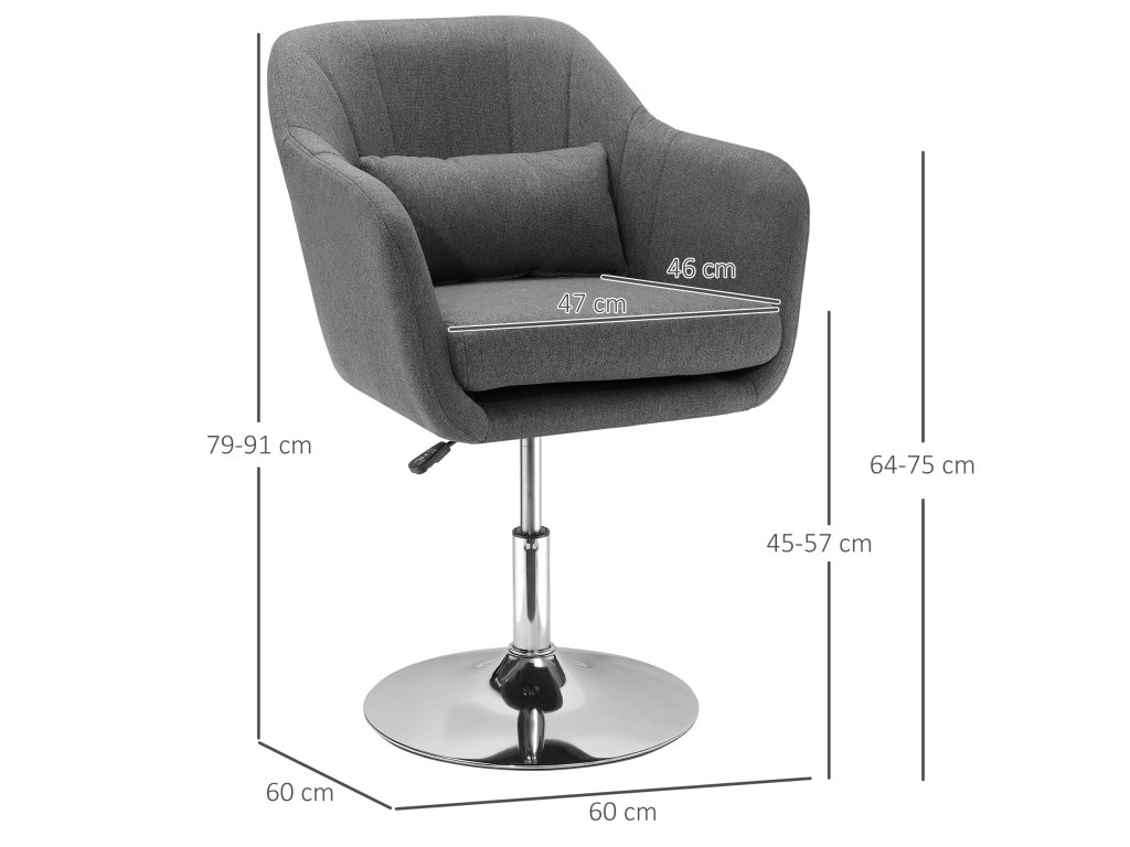 HOMCOM Otočná židle, výškově nastavitelná kancelářská židle, polyester podobný lnu, kov, 60 x 60 x 79-91 cm, tmavě šedá