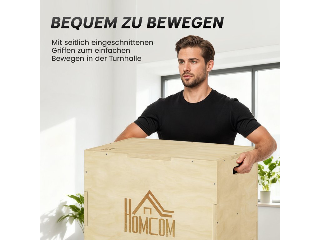 - Snadná mobilita: Díky dvěma otvorům pro rukojeti lze jumping box bez námahy přemisťovat po obývacím pokoji, venku nebo ve studiu a vytvářet spontánní tréninkové příležitosti pro přátelské tréninkové momenty