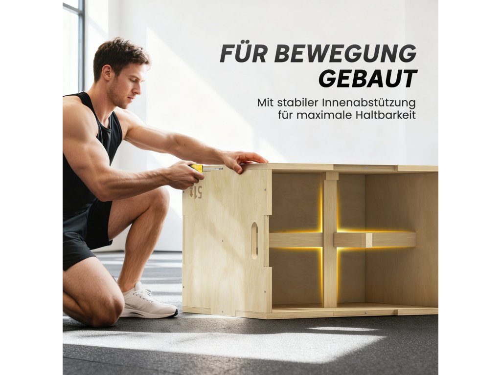 - Robustní nosnost: Díky masivnímu bukovému dřevu a desce o tloušťce 2 cm nabízí skákací box bezpečnou stabilitu až do 120 kg pro intenzivní trénink v posilovně nebo doma a zaručuje pohodový trénink