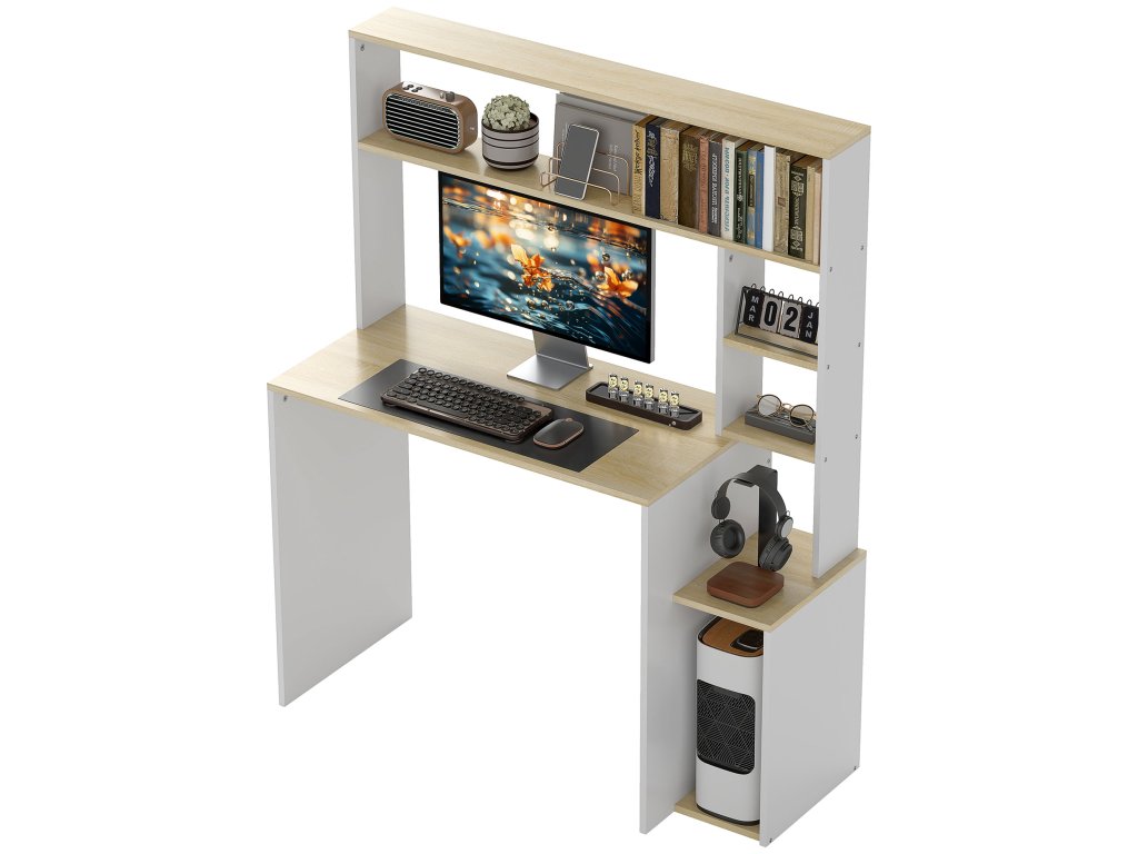 - Organizovaný pracovní prostor: Tento počítačový stůl je vybaven integrovaným stojanem na procesor a třemi bočními úložnými přihrádkami, které zajišťují uklizený a efektivně organizovaný pracovní prostor