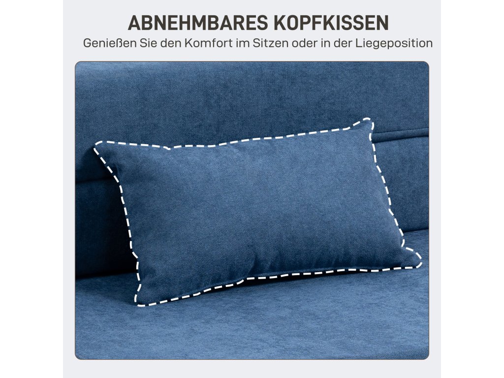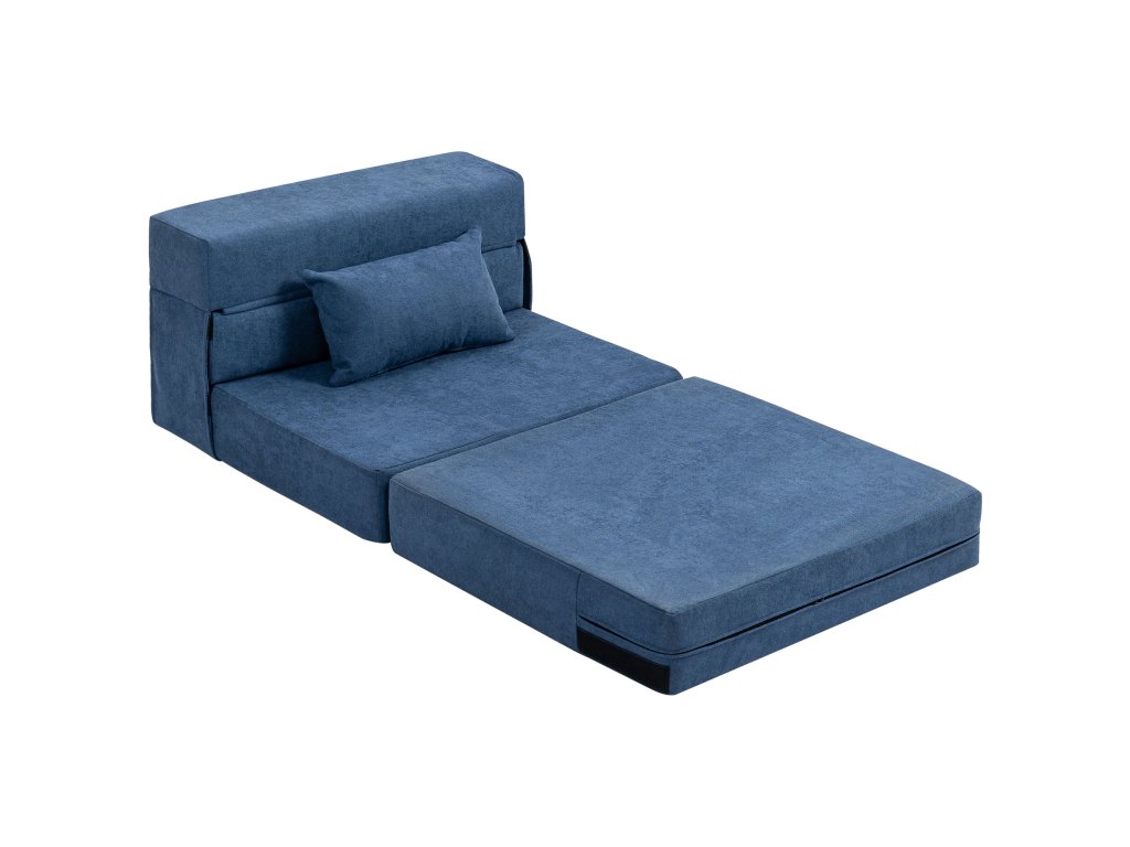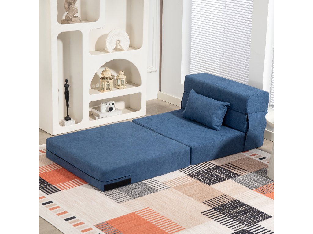 HOMCOM Podlahová pohovka, čalouněná pohovka, rozkládací na matraci, pěna, polštáře, tmavě modrá barva
