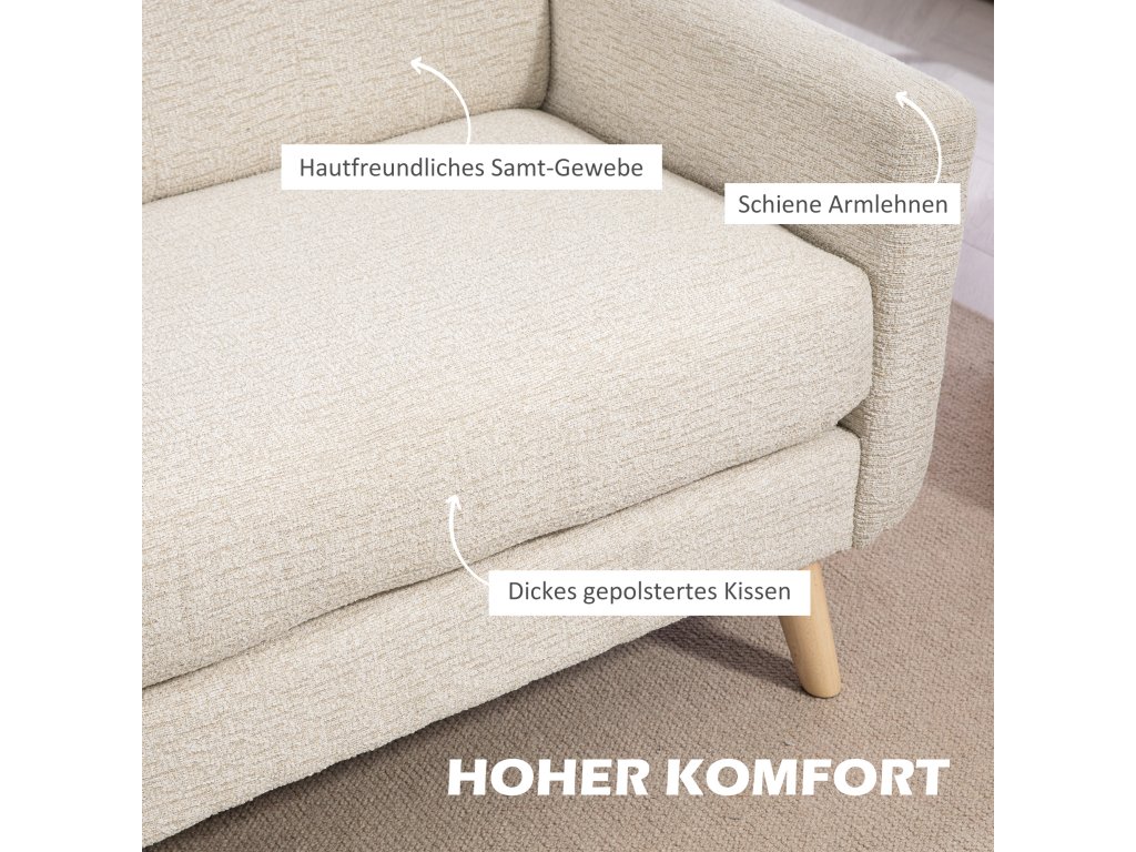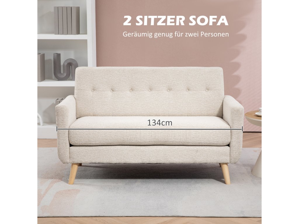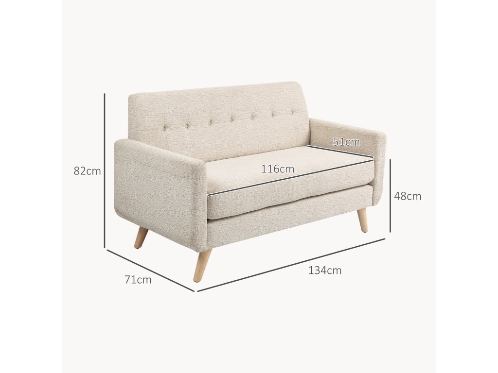 HOMCOM Pohodlná dvoumístná pohovka, 134x71x82 cm, béžová barva
