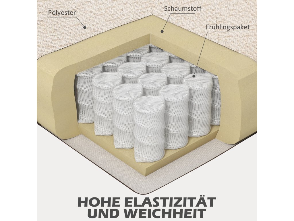 - ✔ Hustě čalouněný sedák s pružinovým jádrem pro pohodlné zaboření do země