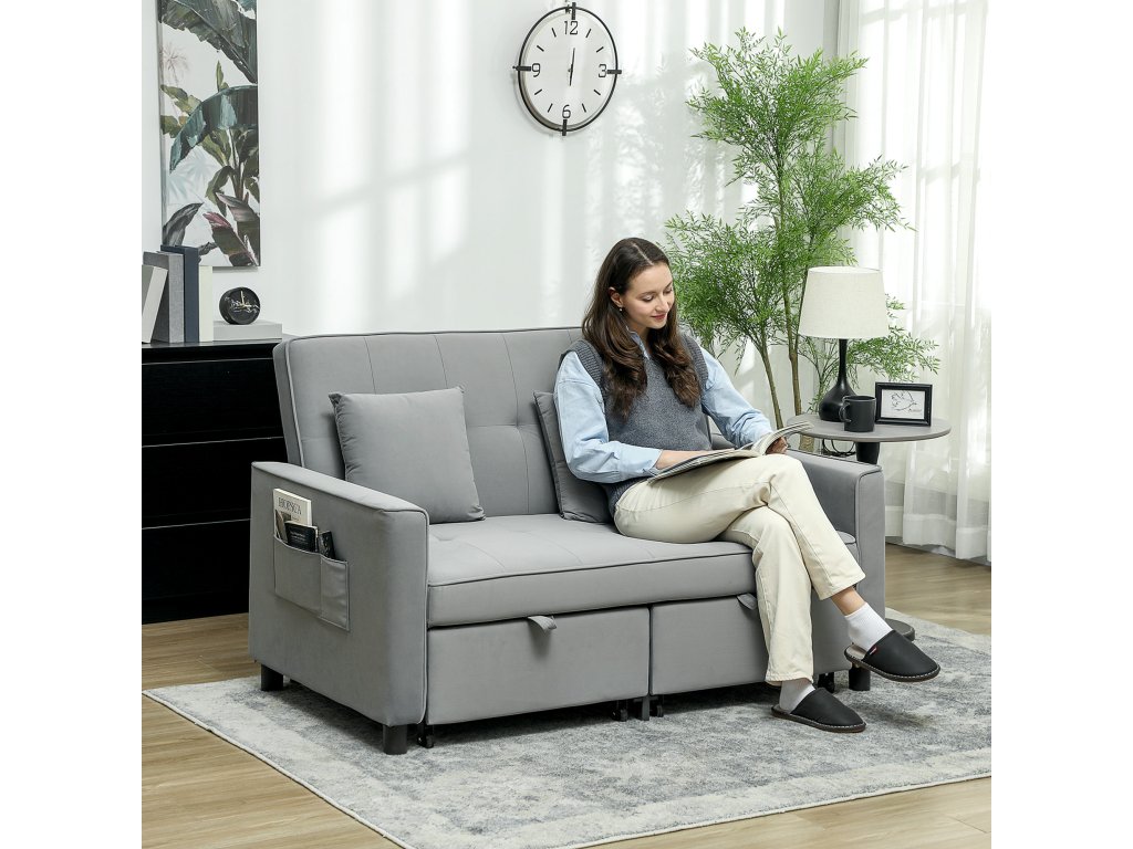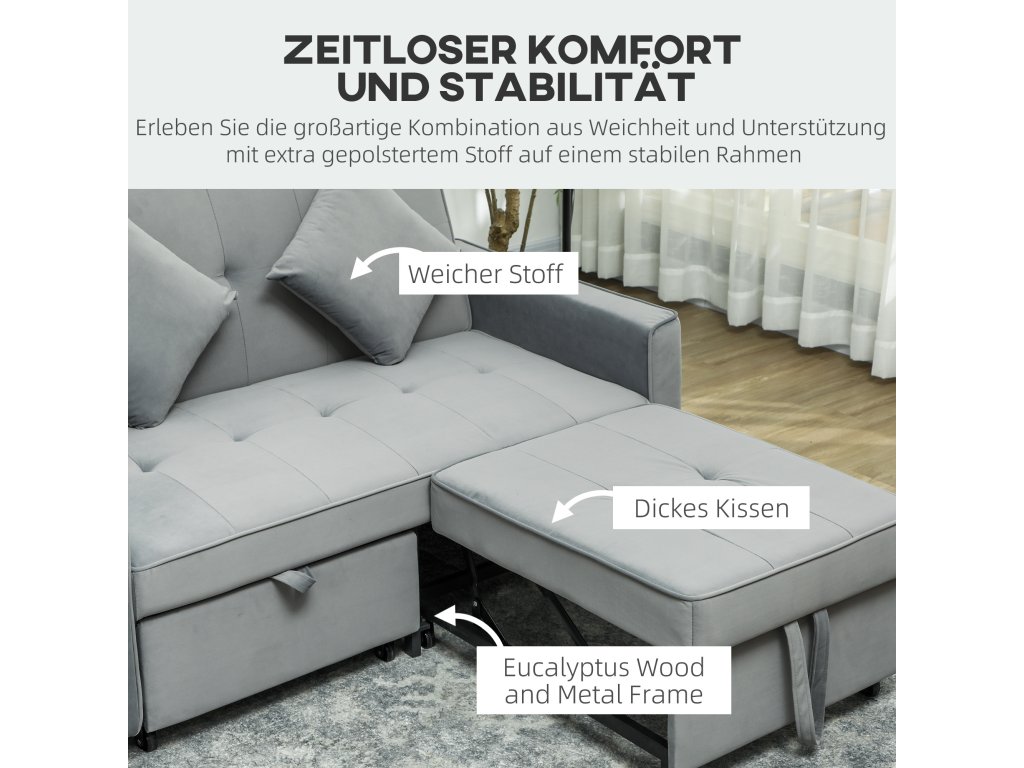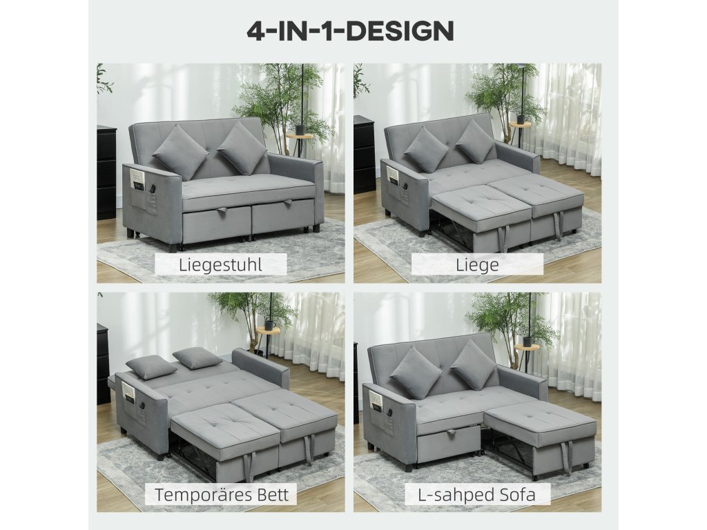 HOMCOM Pohovka 4 v 1, polohovatelná pohovka, rozkládací pohovka, s polštáři, látkový potah, do obývacího pokoje, ložnice, šedá barva