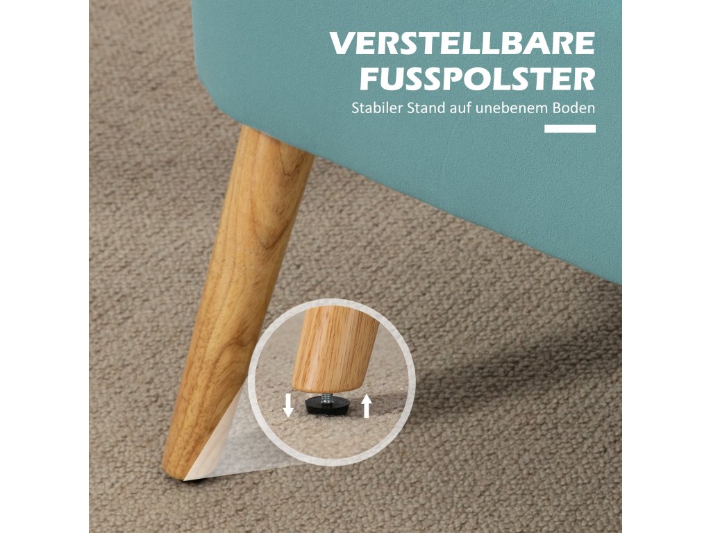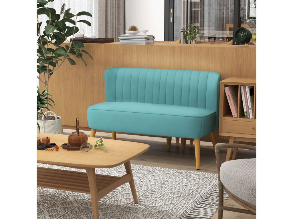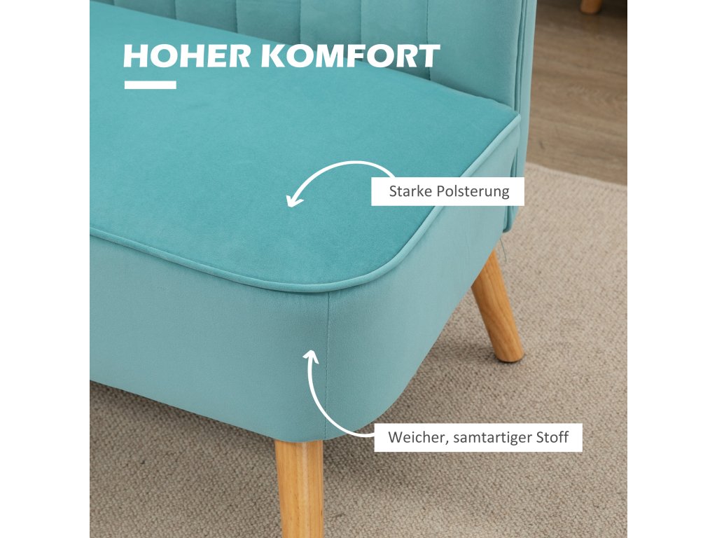 HOMCOM Pohovka Retro Design Dvoumístná pohovka, Dřevěné nohy, 117 cm x 56,5 cm x 77 cm, Zelená