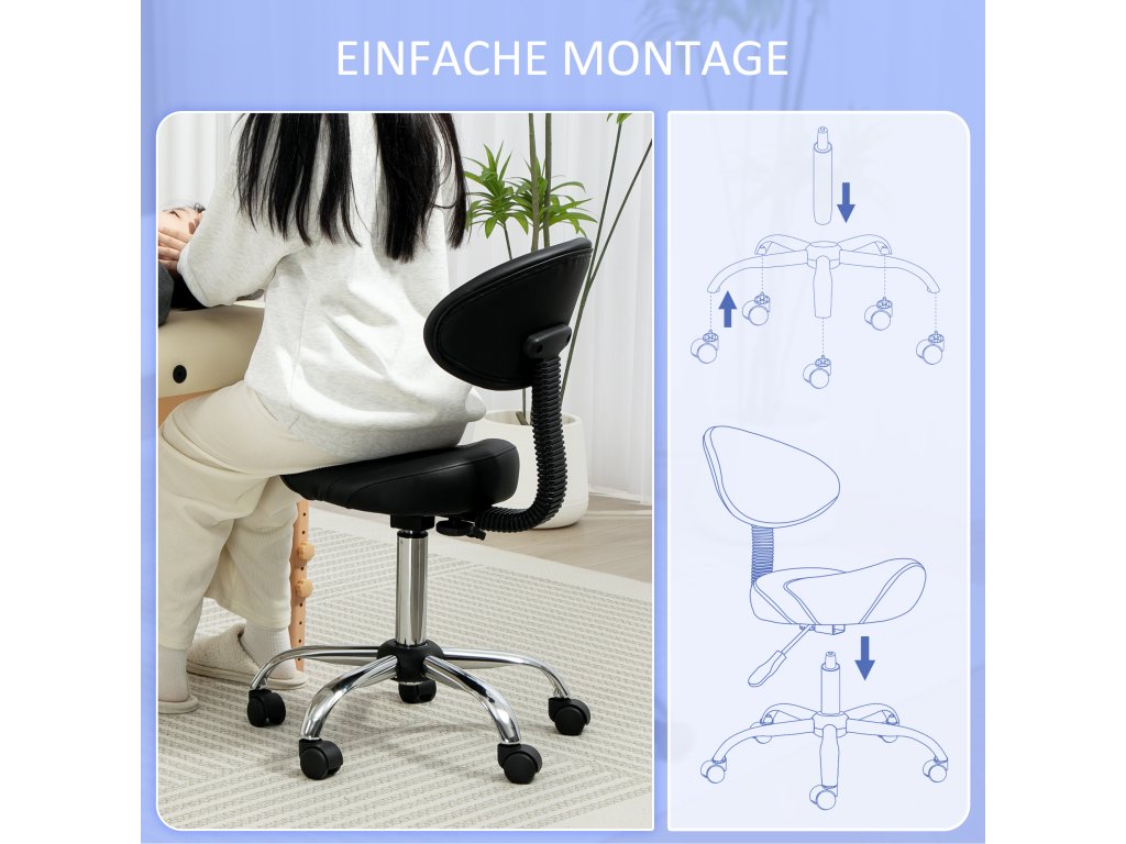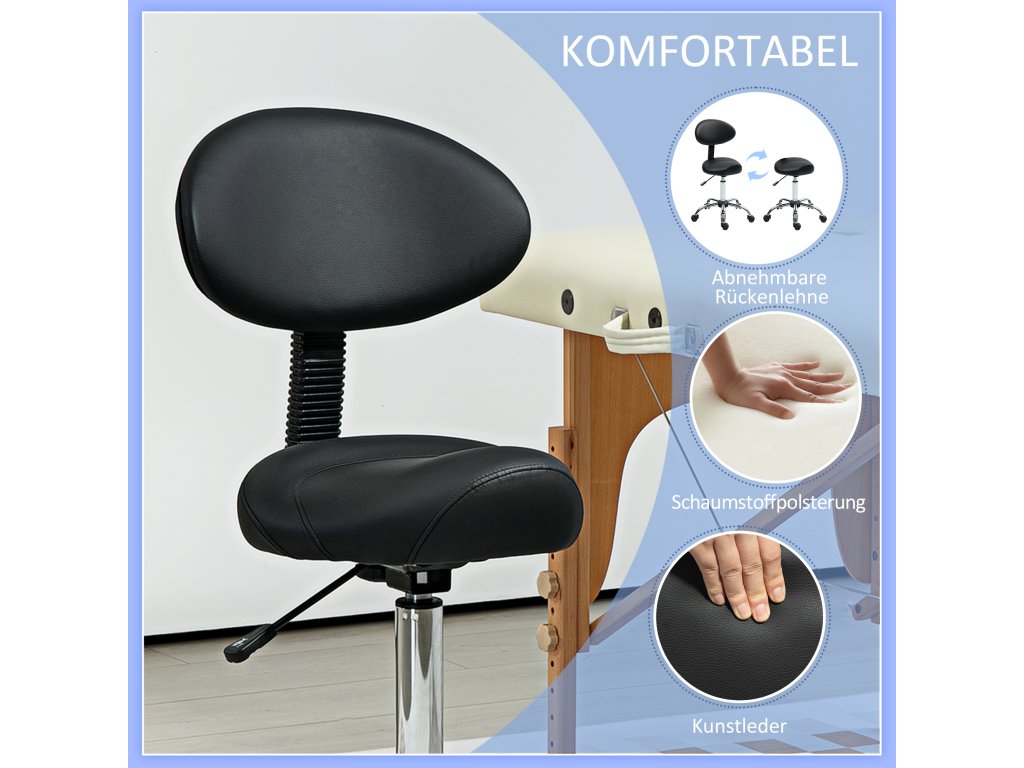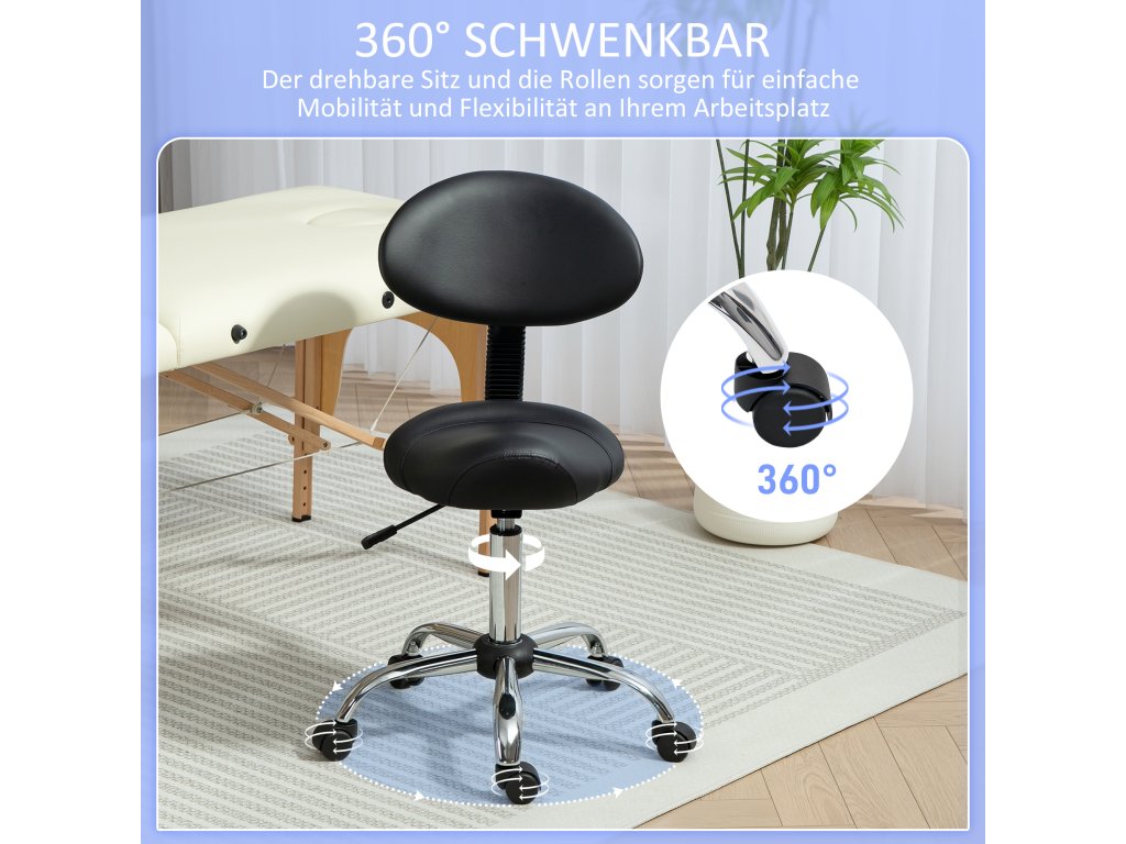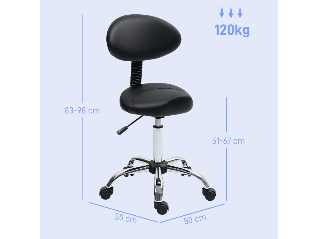 HOMCOM Pojízdná stolička s nastavitelnou výškou a opěradlem, otočná stolička 83-98 cm, pracovní stolička otočná o 360°, do kanceláře a salónu