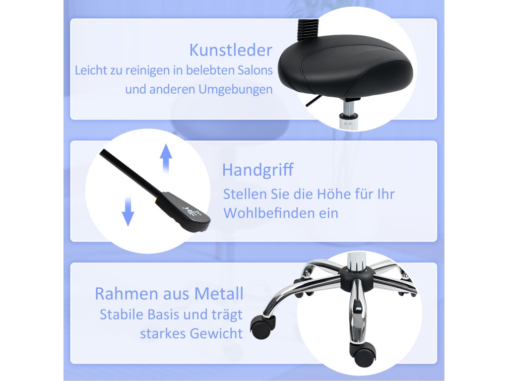 Plynulý pohyb: Díky 360stupňovému otočnému sedáku a kolečkům pojízdné stoličky umožňuje tato otočná židle snadnou mobilitu a flexibilitu na pracovišti – ideální pro dynamická prostředí. Nastavitelné pohodlí: Tato výškově nastavitelná stolička je vybavena plynovým zvedákem třídy 3 a robustní kovovou základnou a umožňuje plynulé a přesné nastavení pro individuální pohodlí. Ideální pro práci i volný čas. Snadná údržba: Díky snadno čistitelnému povrchu je tato výškově nastavitelná pojízdná stolička obzvláště vhodná pro rušné kosmetické salony nebo dynamická pracovní prostředí, kde je pohodlí prvořadé. Montáž je také jednoduchá a přímočará. Víceúčelová a praktická: Tato pojízdná stolička je navržena tak, aby se hodila do široké škály profesionálních prostředí. Bezproblémově se hodí do kosmetických salonů, tetovacích studií nebo vaší domácí kanceláře a podporuje produktivitu stylem a funkčností.