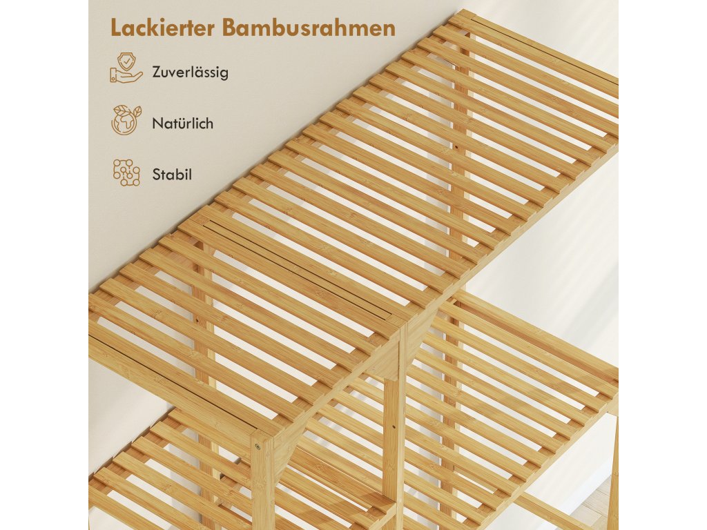 - ✔ Lakovaný bambusový rám dodává přirozenou pevnost s vodoodpudivým povrchem