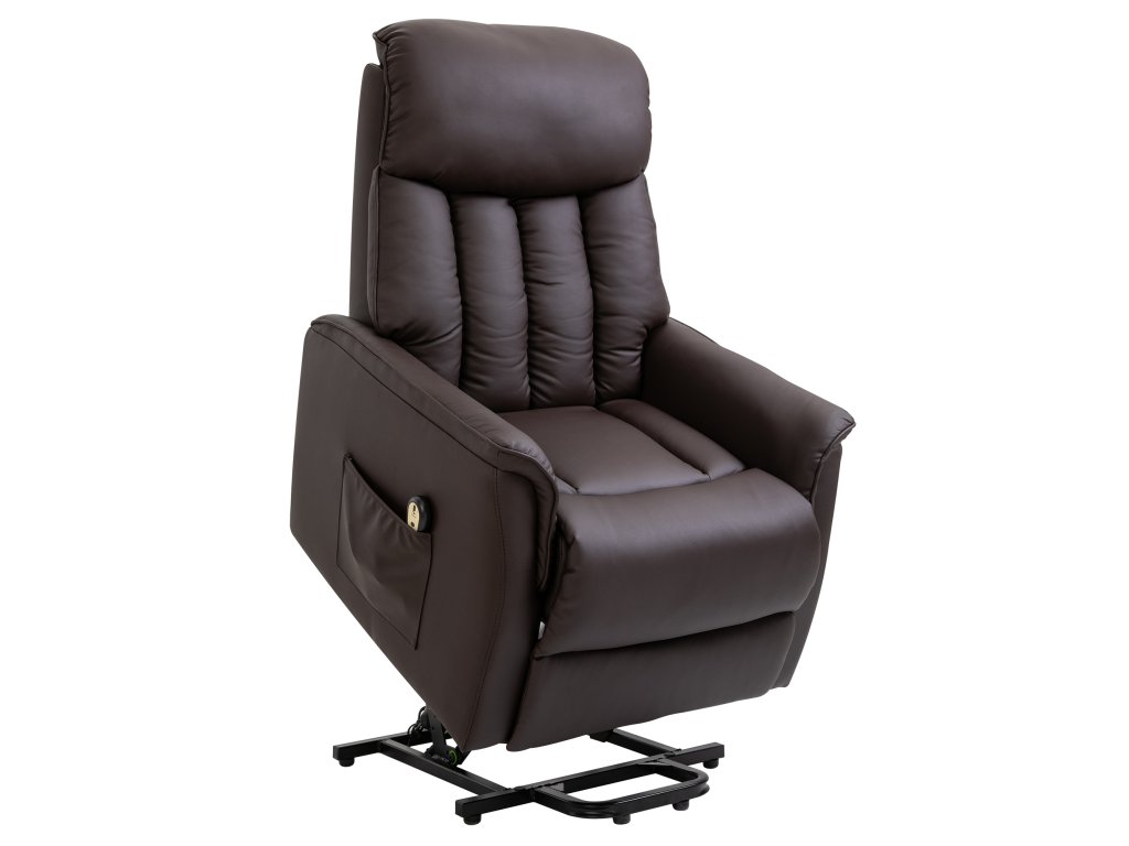 HOMCOM polohovací křeslo, elektrické TV křeslo se stojánkem, funkce polohování, TV křeslo s podnožkou, boční kapsa, dálkové ovládání, do obývacího pokoje, do 150 kg, imitace kůže, hnědá barva