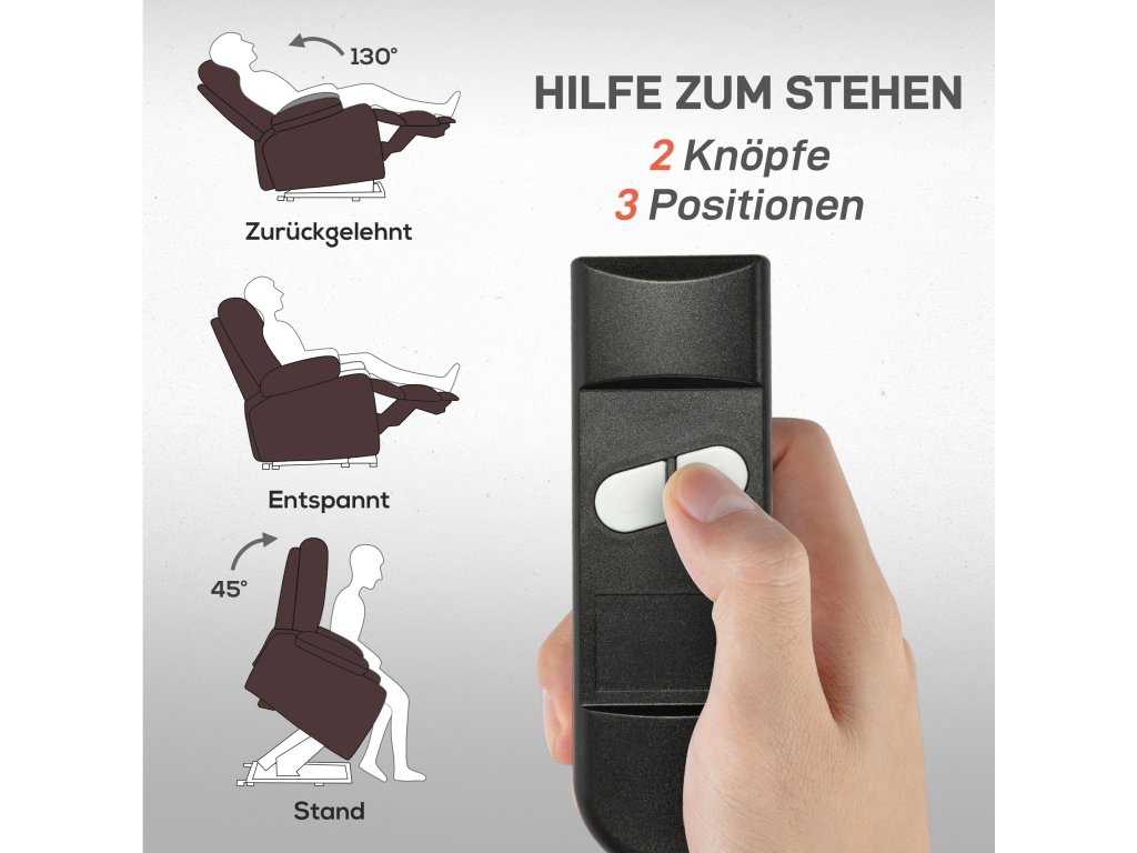 - Křeslo se stojánkem a funkcí naklápění: Elektrické televizní křeslo se stojanem umožňuje plynulé přechody mezi ležením, sezením a vstáváním. Pomocí uživatelsky přívětivého dálkového ovládání můžete křeslo zastavit v libovolné poloze. Opřete se až o 130 stupňů a využijte maximální úhel zvednutí 45 stupňů.
