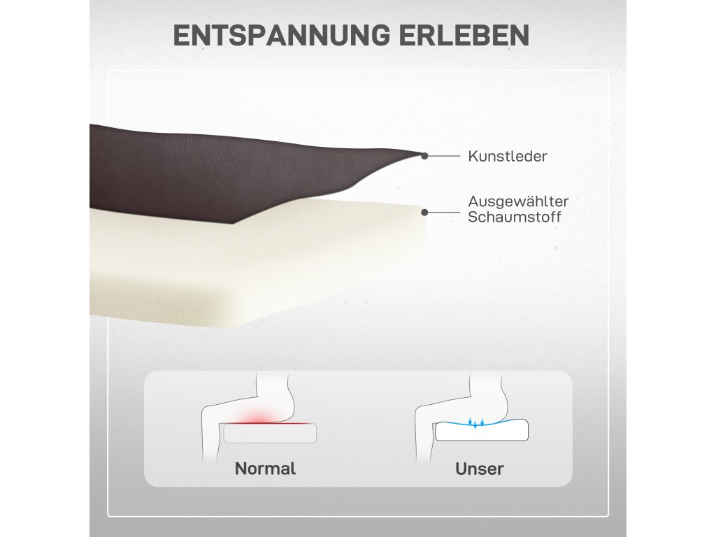 - Polstrované pohodlí: Křeslo pro seniory nabízí maximální pohodlí díky polstrovanému polštáři v oblasti zad, sedadla a područek. Díky vysokému opěradlu, silnému polštáři a měkkému potahu z imitace kůže zažijete bezkonkurenční zážitek ze sezení.