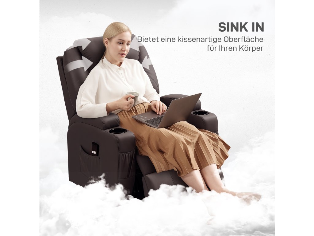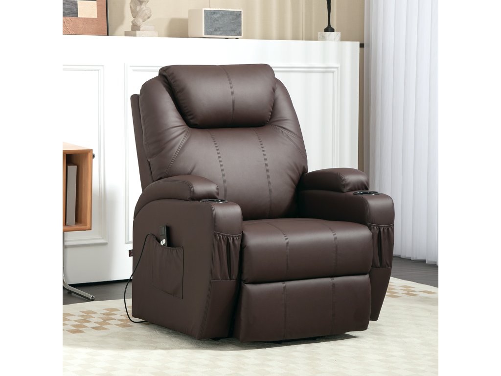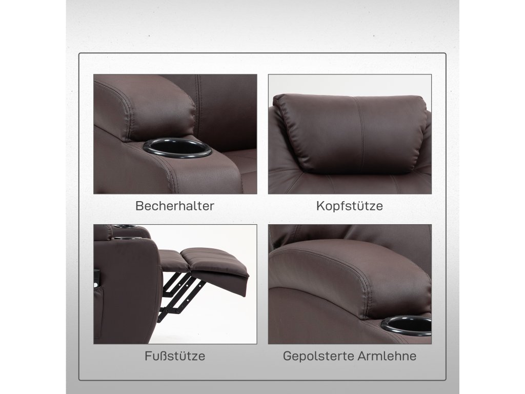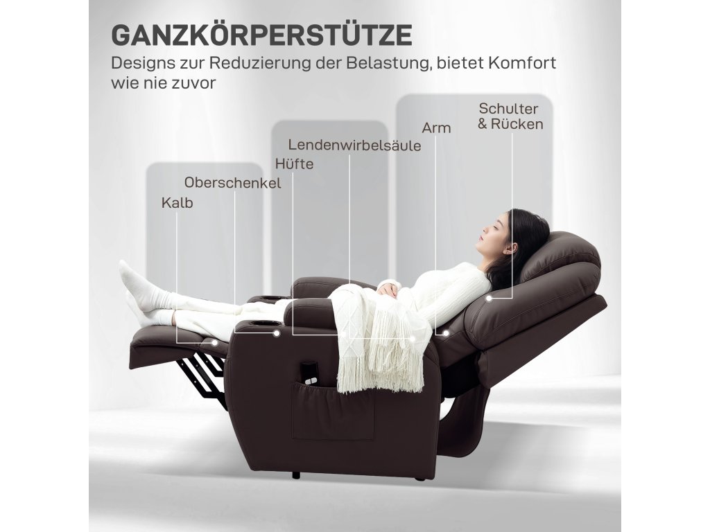 HOMCOM polohovací křeslo, polohovací křeslo se stojánkem, včetně dálkového ovládání, držák na nápoje, nastavitelná opěrka zad, hnědá barva