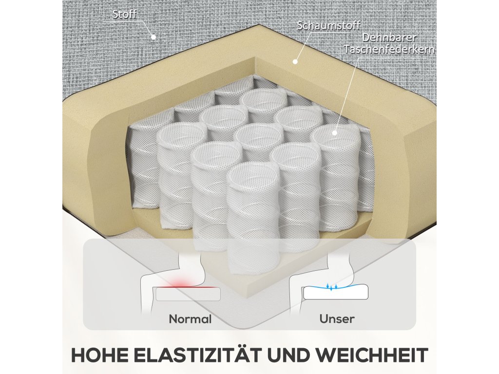 Uvelebte se v přepychovém pohodlí křesla HOMCOM, které je vybaveno opěradlem s náklonem až 60° pro dokonalou relaxaci. Opěrku nohou jednoduše sklopte patami a odpočiňte si po náročném dni. Polohovací křeslo čalouněné taštičkovými pružinami a potažené měkkým plátnem dodá moderní eleganci každé místnosti a díky svému luxusnímu polstrování a stylovému designu nabízí optimální pohodlí.