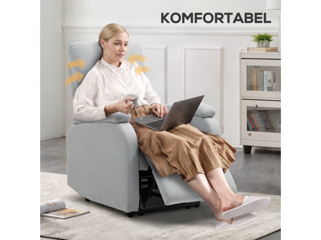 - Stylový design: Díky čistým liniím a minimalistické estetice poskytuje toto polohovatelné televizní křeslo nejen pohodlí, ale také vylepšuje vzhled vašeho domova. Ideální pro různé místnosti