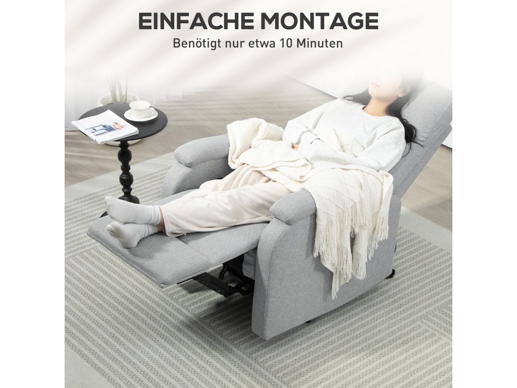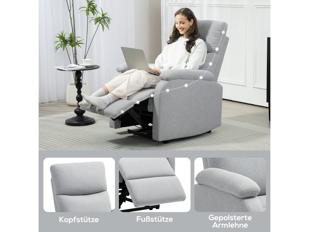 HOMCOM Polohovací křeslo, relaxační křeslo s nastavitelným opěradlem, podnožka, čalouněné křeslo do obývacího pokoje, šedá barva