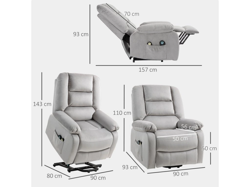 HOMCOM polohovací křeslo s masážní funkcí, 90x93x110cm, světle šedé