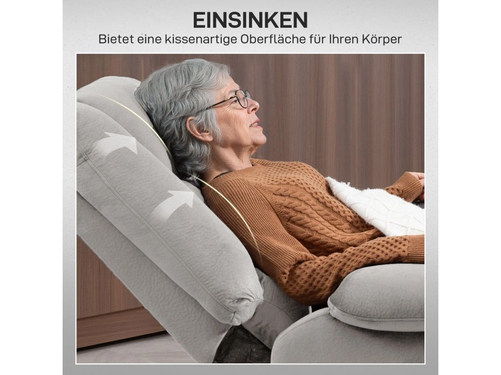 Užijte si dokonalou relaxaci s elektrickým televizním křeslem HOMCOM. Cítíte se pohodlně díky silnému čalounění, opěradlu nastavitelnému v úhlu 135° a podnožce. Svou oblíbenou polohu snadno najdete pomocí dálkového ovládání. Osm masážních bodů a bederní vyhřívání křesla pro seniory poskytují další pohodlí. Po dlouhém dni se jednoduše opřete a užijte si zasloužený odpočinek.