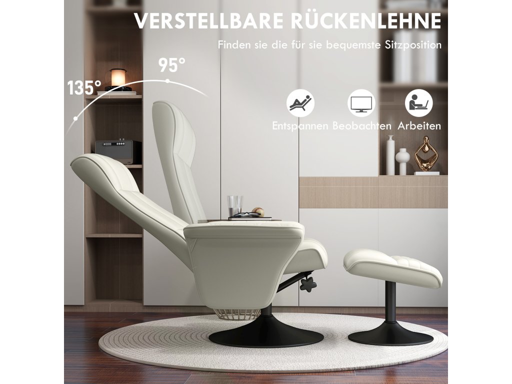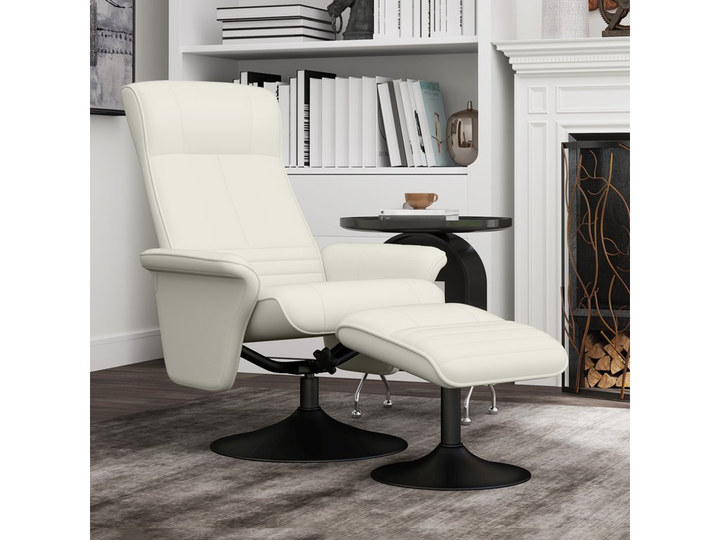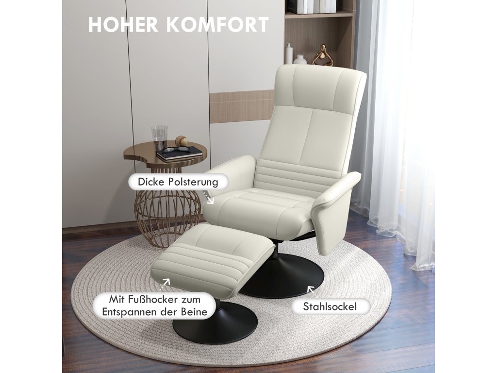 HOMCOM Polohovací TV křeslo s podnožkou, otočné, ergonomické, vzhled mikrovlákna, nosnost do 150 kg, krémově bílá