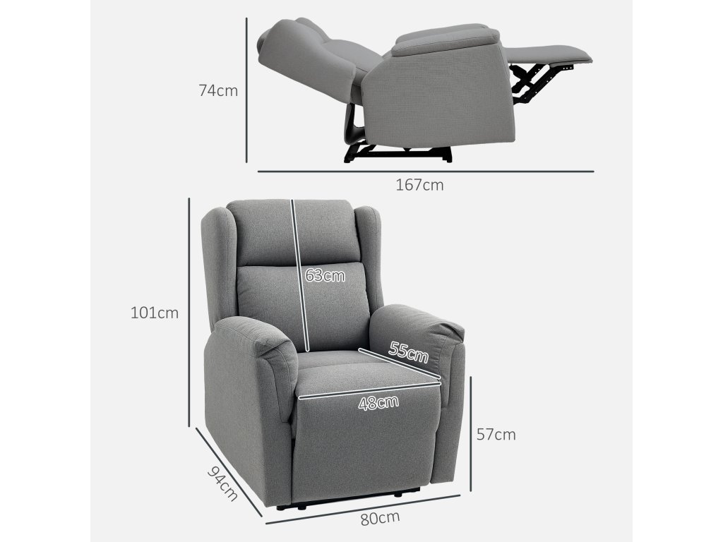 - Informace o televizním křesle s funkcí polohování: Celkové rozměry: 80 Š x 94 H x 101 V cm (ve svislé poloze). 80 Š x 167D x 74V cm (nakloněné). Nosnost: 150 kg.