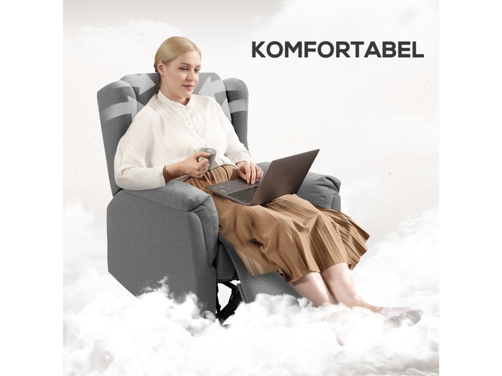 Odpočiňte si v luxusním polohovacím křesle HOMCOM s opěradlem nastavitelným v úhlu 160° pro dokonalou relaxaci. Po namáhavém dni můžete jednoduše sklopit podnožku a vyklopit paty. Čalounění s kapsovými pružinami křesla s funkcí polohování, potažené měkkou látkou, dodá každé místnosti moderní eleganci a díky velkorysé výplni a stylovému designu zaručí pružnou oporu.