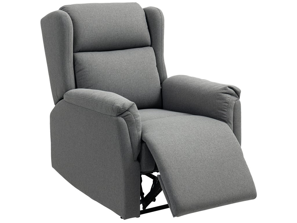 - ✔ Opěradlo křesla s polohovatelnou funkcí lze sklopit až do úhlu 160° a nastavuje se ručně pomocí ovládací přezky. Podnožku lze sklopit nebo vyklopit tlakem pat nebo nohou
