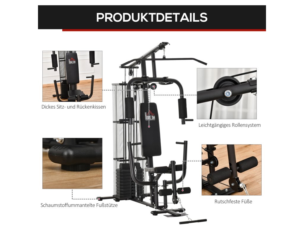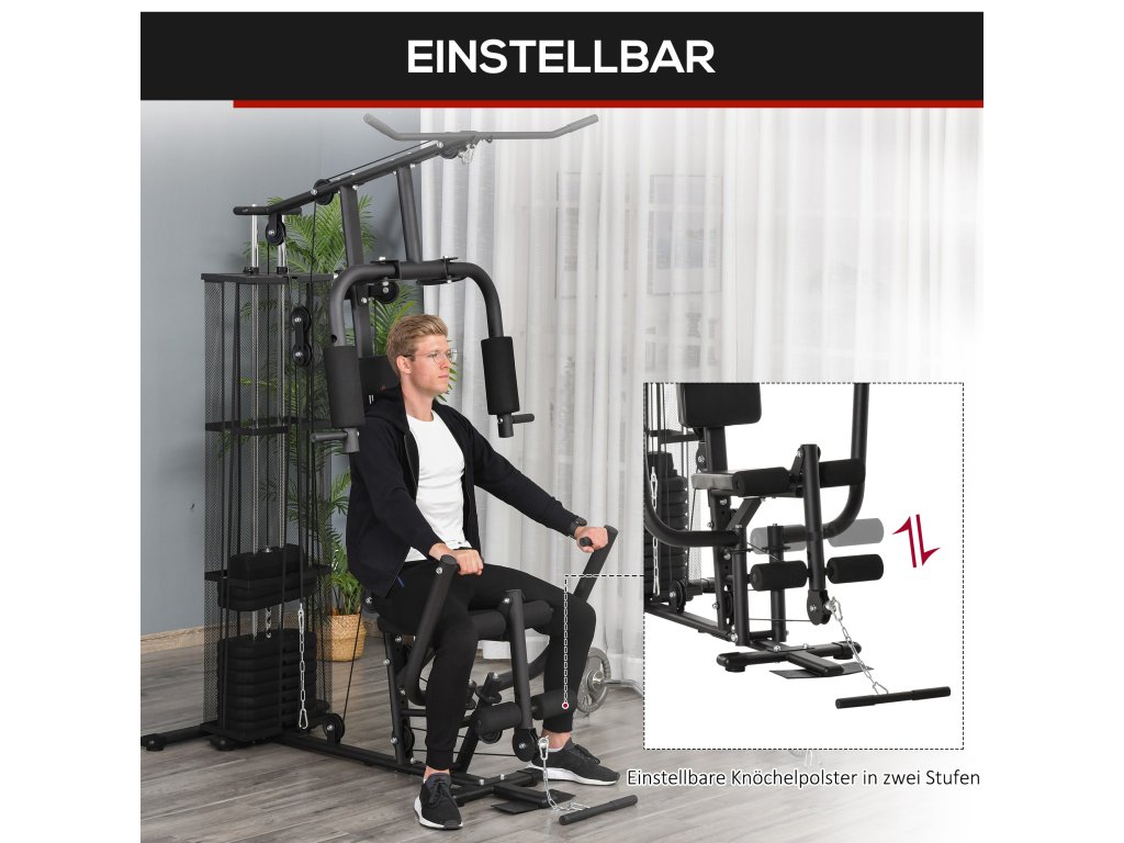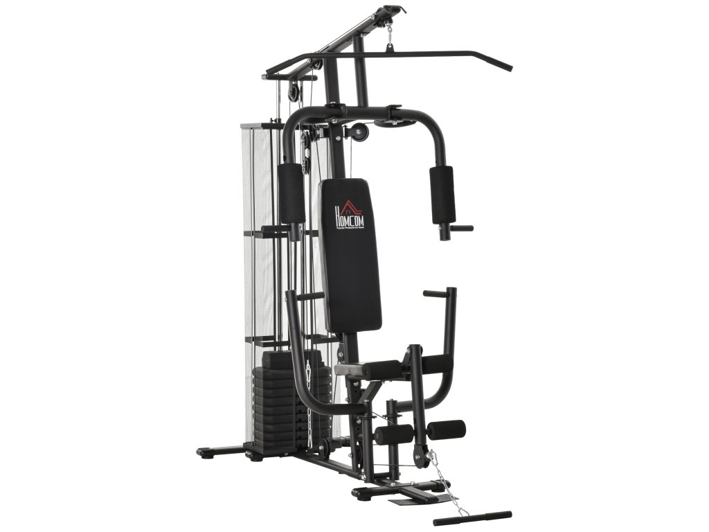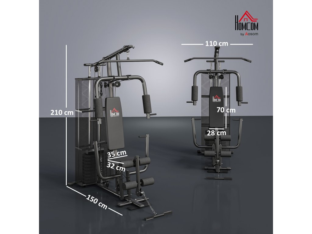 HOMCOM Posilovací stanice fitness stanice fitness zařízení multifunkční posilovací stanice multifunkční posilovací stanice s lat pulldown butterfly bar 45kg závaží lano, fitness zařízení pro domácnost černá