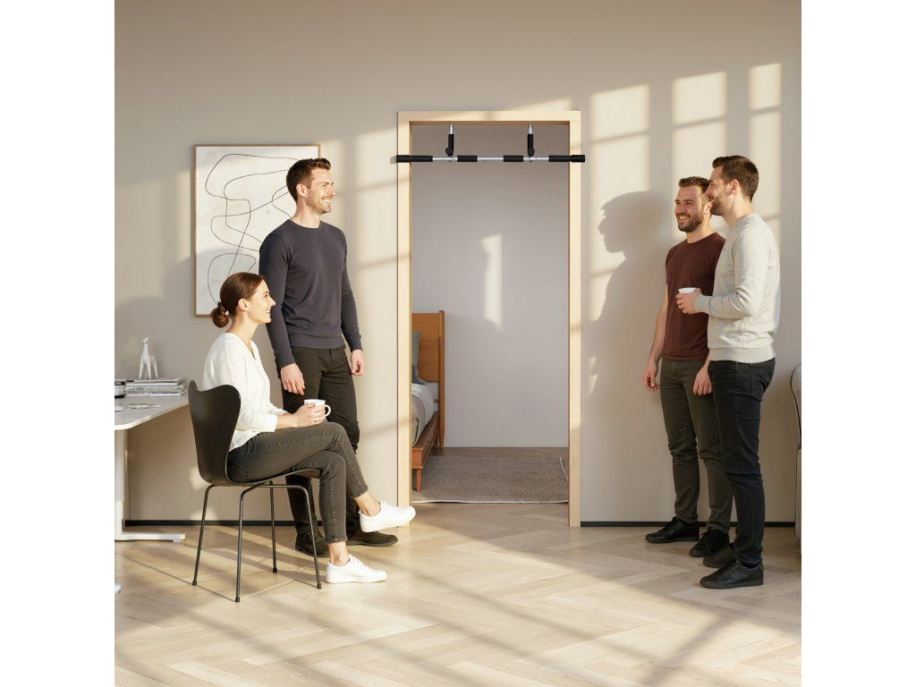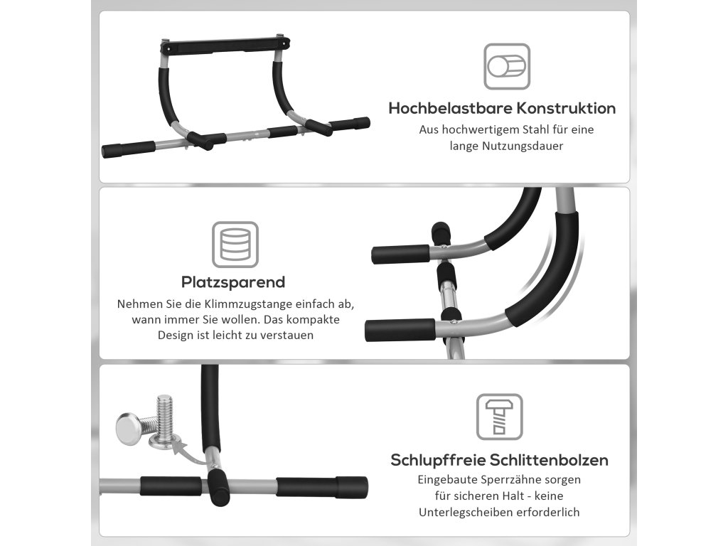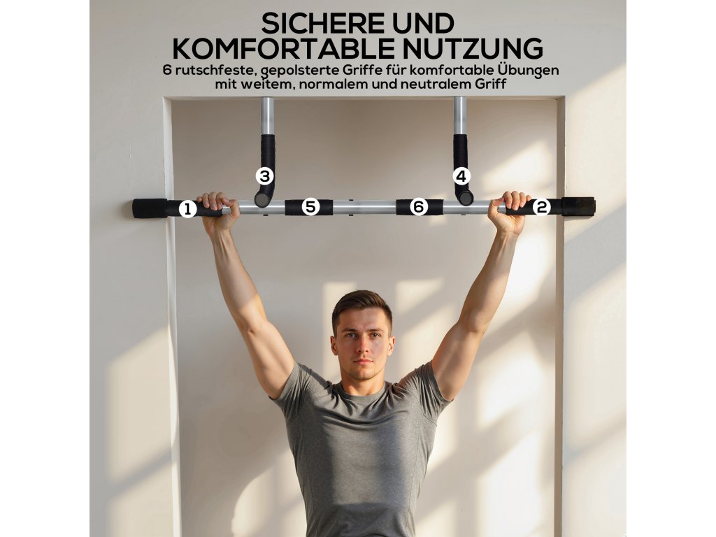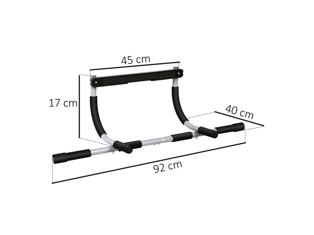 HOMCOM Posilovací tyč, tréninkový držák, multifunkční dveřní tyč, ocel, pěna, 92 x 40 x 17 cm, černá+šedá