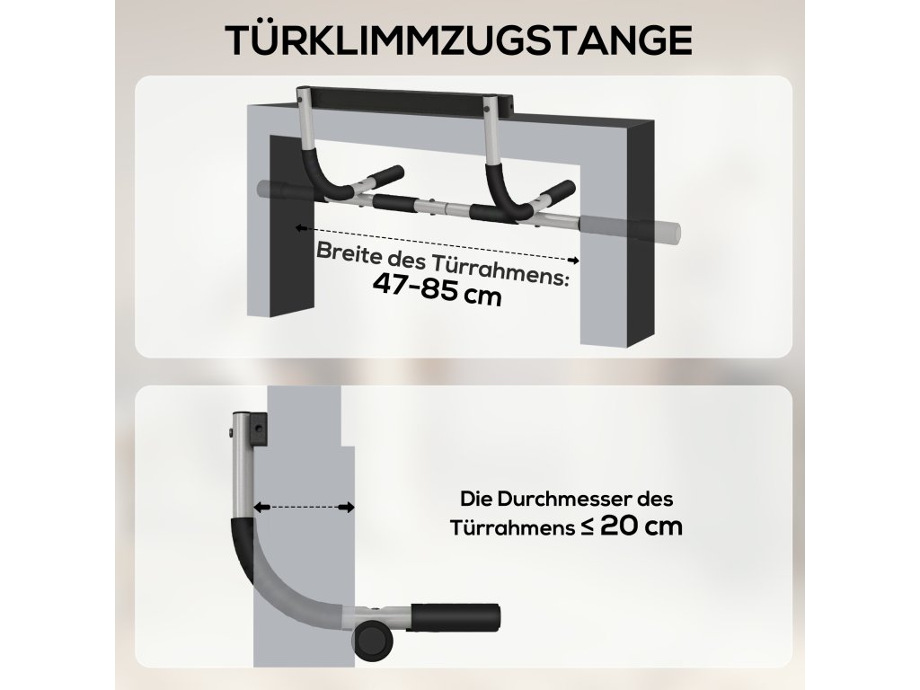 - Specifikace výrobku: Vhodná rukojeť pro cvičení v ruce: Celkové rozměry: 92L x 40W x 17H cm. Vhodné pro dveře: šířka: 50-85 cm, tloušťka ≤ 15 cm.