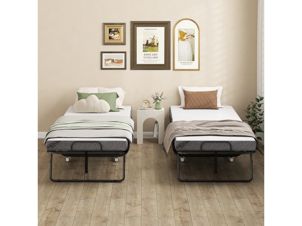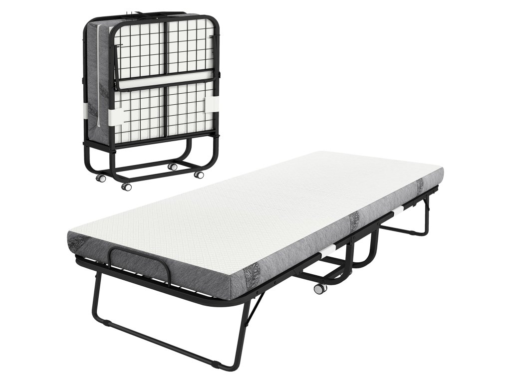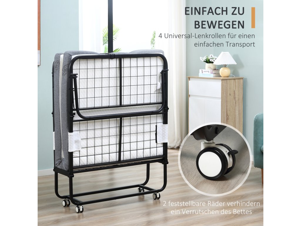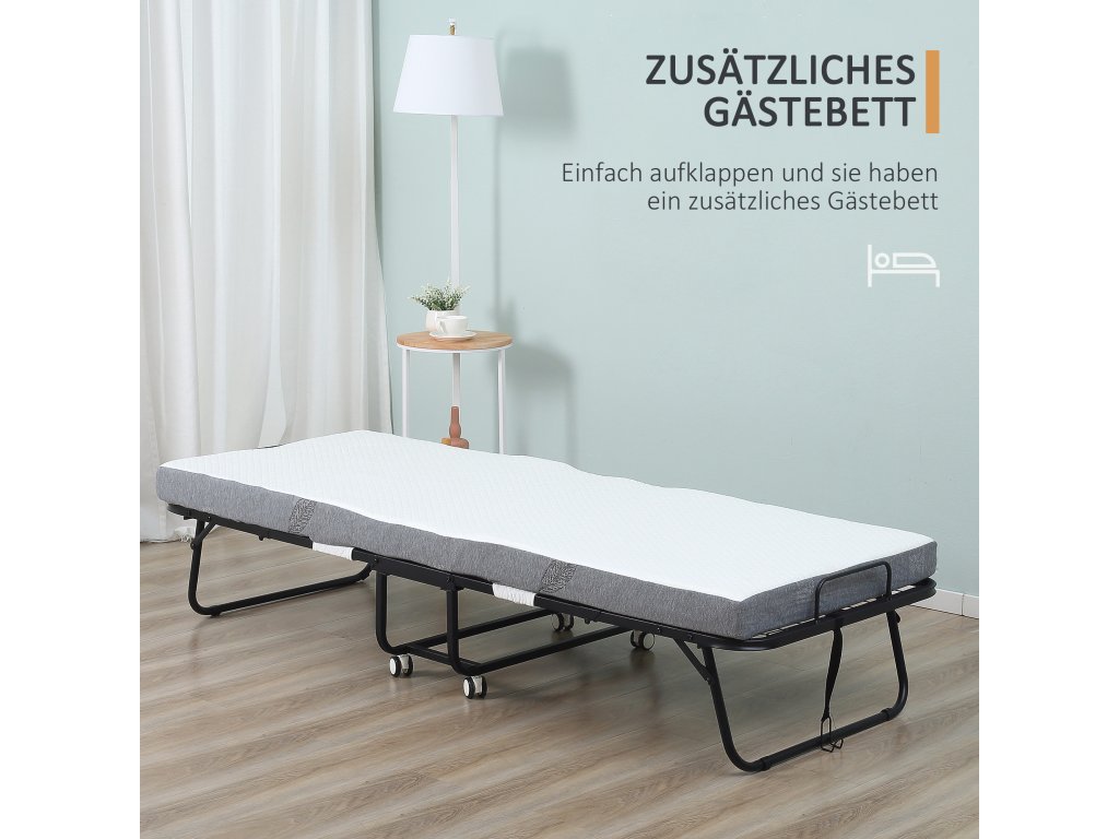 Obáváte se, že pro nečekané hosty nejsou k dispozici žádná lůžka? Tato praktická a pohodlná skládací postel od společnosti HOMCOM vás dokonale vybaví pro noční návštěvy a poskytne vašim hostům velmi pohodlné místo ke spánku. Postel lze rychle rozložit a díky čtyřem hladce se pohybujícím kolečkům ji lze bez námahy přemístit. Pokud ji nepoužíváte, můžete ji složit a uložit, abyste ušetřili místo. Měkká matrace zajišťuje pohodlné spaní a klidný spánek.