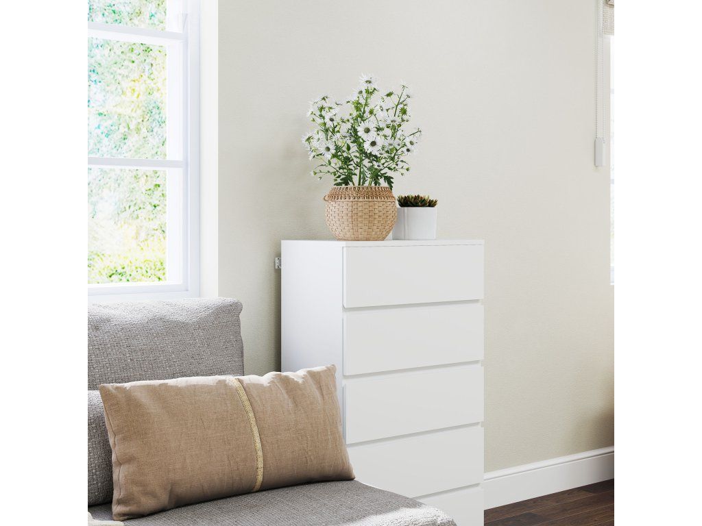 - ✔ Pět zásuvek: Úložný prostor pro oblečení a další věci. Kovové pojezdy pro hladké otevírání a zavírání zásuvek