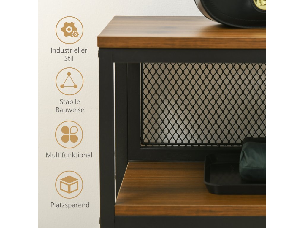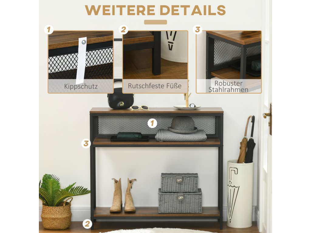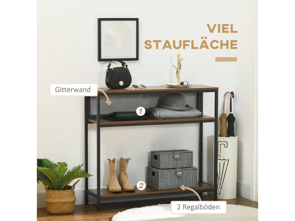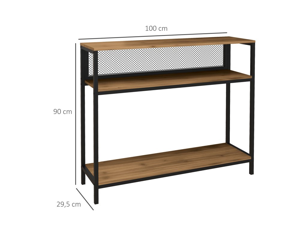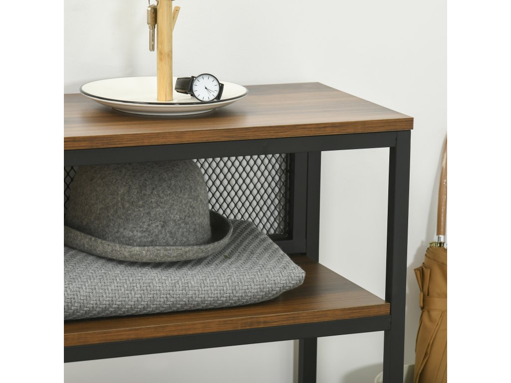 HOMCOM Příborník Konzolový stolek Police do předsíně, průmyslový design, 100 cm x 29,5 cm x 90 cm, hnědá + černá barva