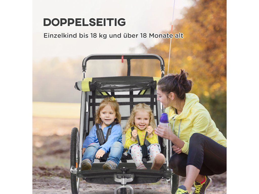 - ✔ Konstrukce 2 v 1: kočárek a přívěs pro děti v jednom