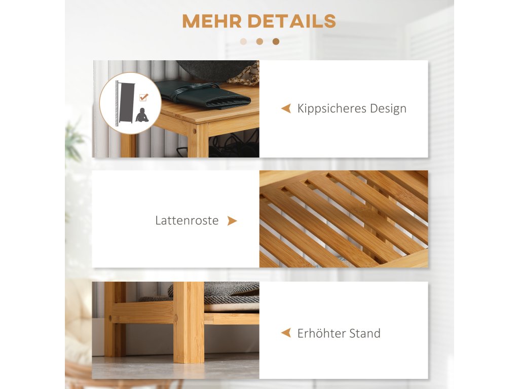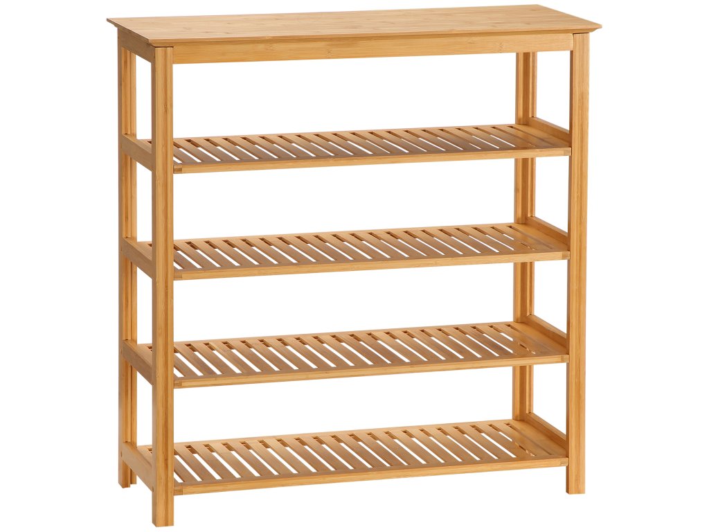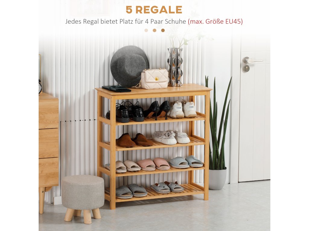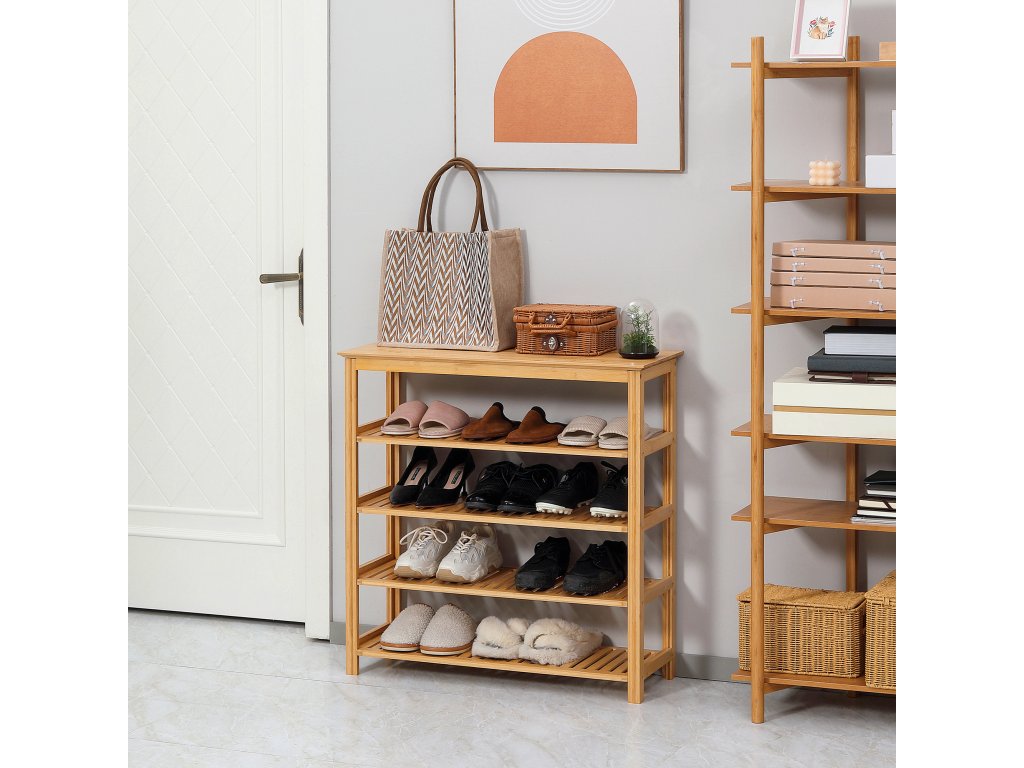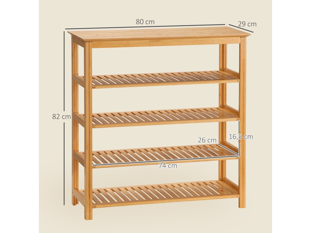 HOMCOM Regál na boty se 4 policemi, bambus, lamely, do velikosti EU 45, příroda