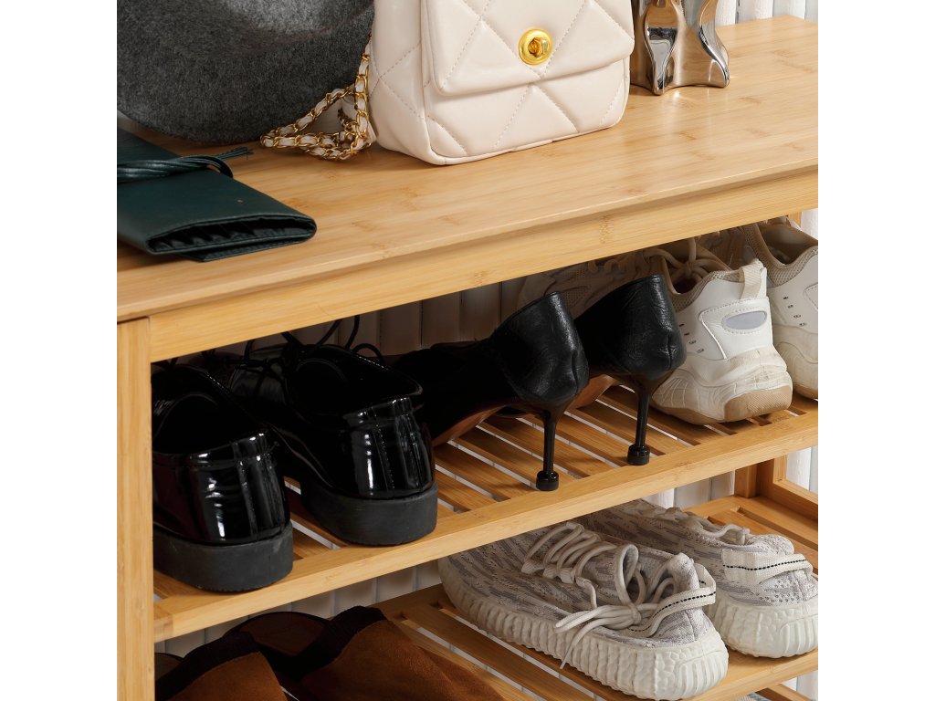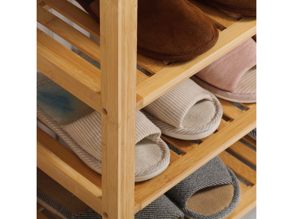 - Bambusová konstrukce: Tento botník je vyroben z pevného bambusového rámu, který je dostatečně pevný, aby unesl až 25 kg, takže je vhodný pro každodenní používání.