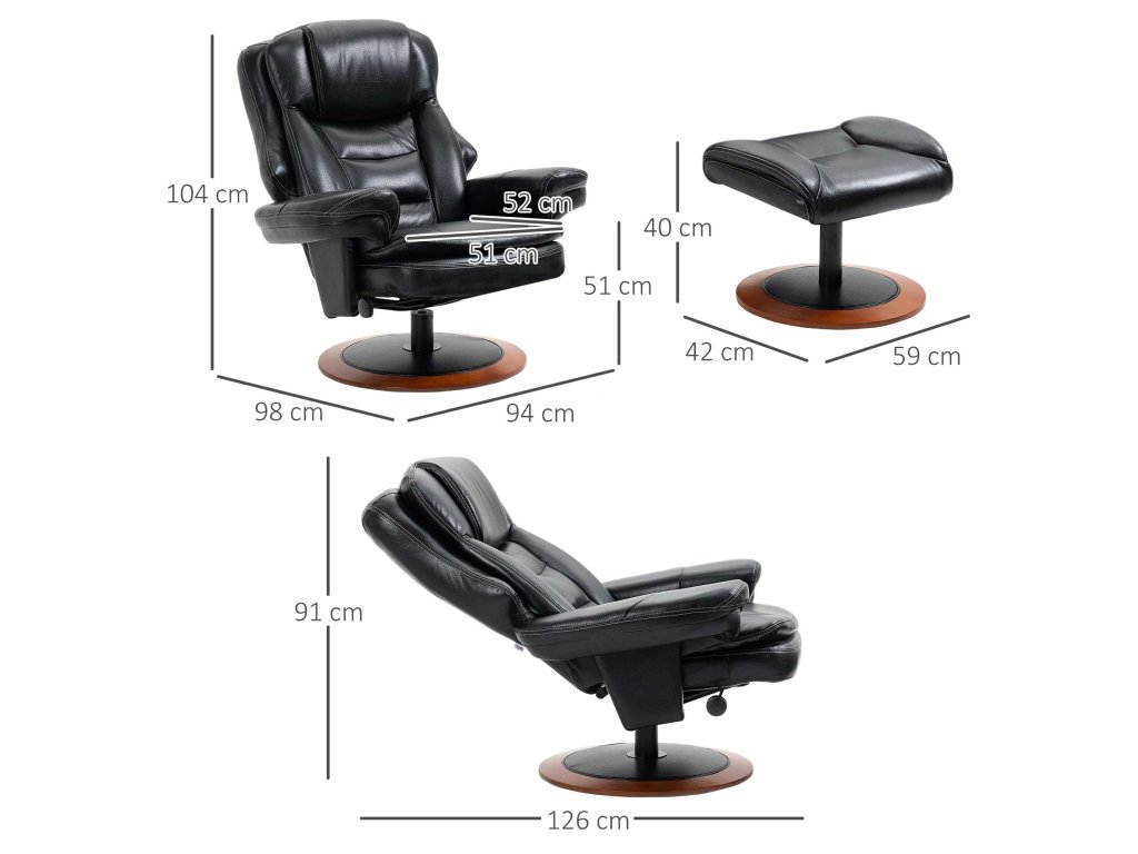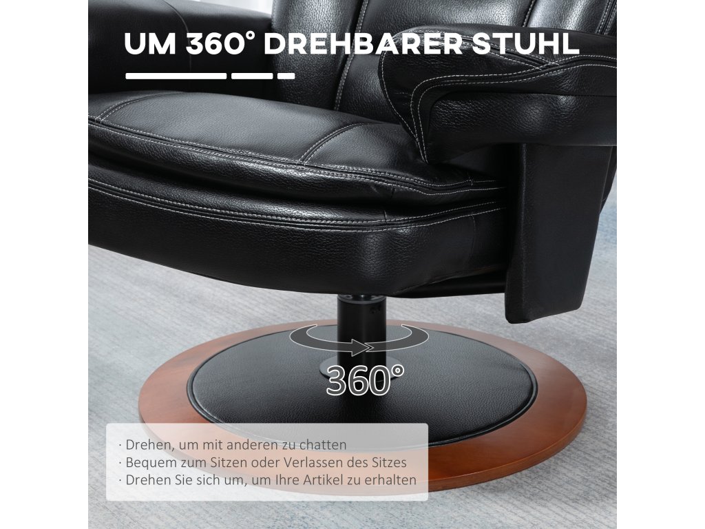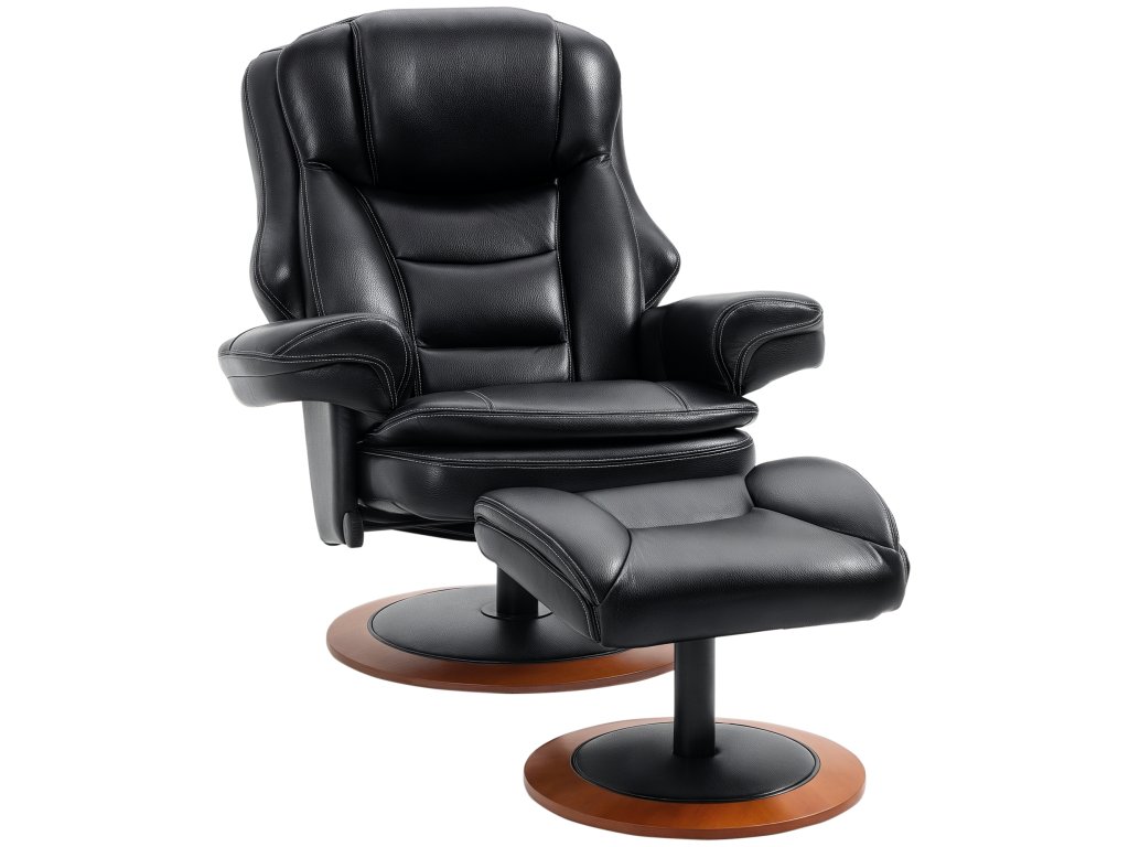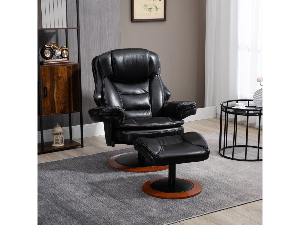 HOMCOM Relaxační křeslo s otomanem, polohovatelné, otočné o 360°, nastavitelný opěrák, černá + hnědá barva