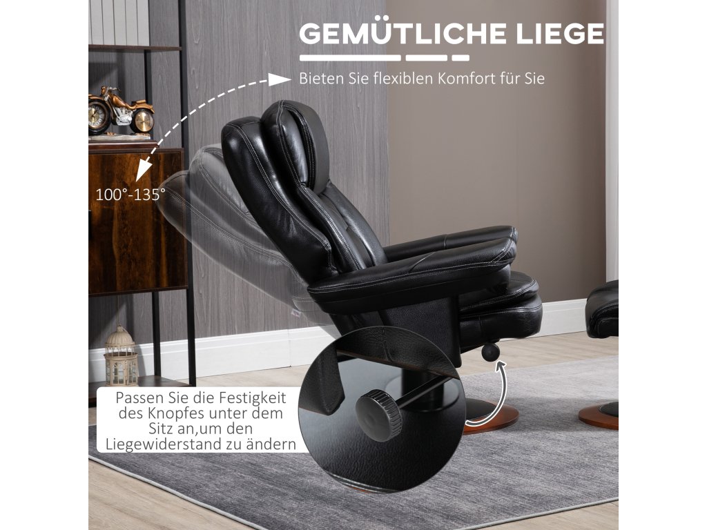 - Zvýšené pohodlí: Televizní křeslo nabízí 16 cm silné polstrování z pěny vysoké hustoty a prodyšné kůže, které kombinuje elegantní vzhled kůže s výhodami cirkulace vzduchu a odvodu vlhkosti a navíc se snadno čistí. Přídavný taburet zvyšuje pohodlí po celý den.