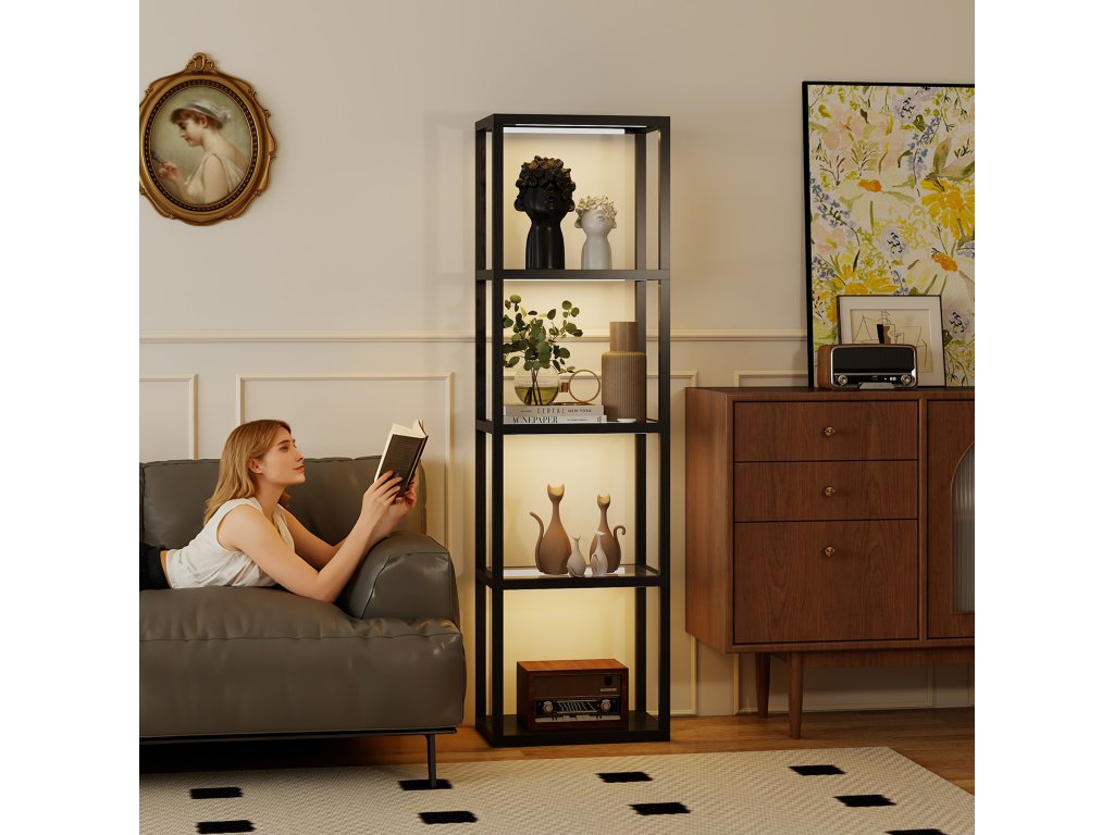 - ✔ Skleněné police stojací lampy propouštějí světlo, takže vaše sběratelské předměty upoutají pozornost