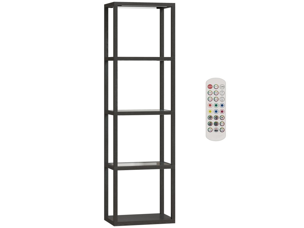 HOMCOM RGB stojací lampa se skleněnými policemi, 4úrovňová LED stojací lampa s dálkovým ovládáním, synchronizace s hudbou, černá barva