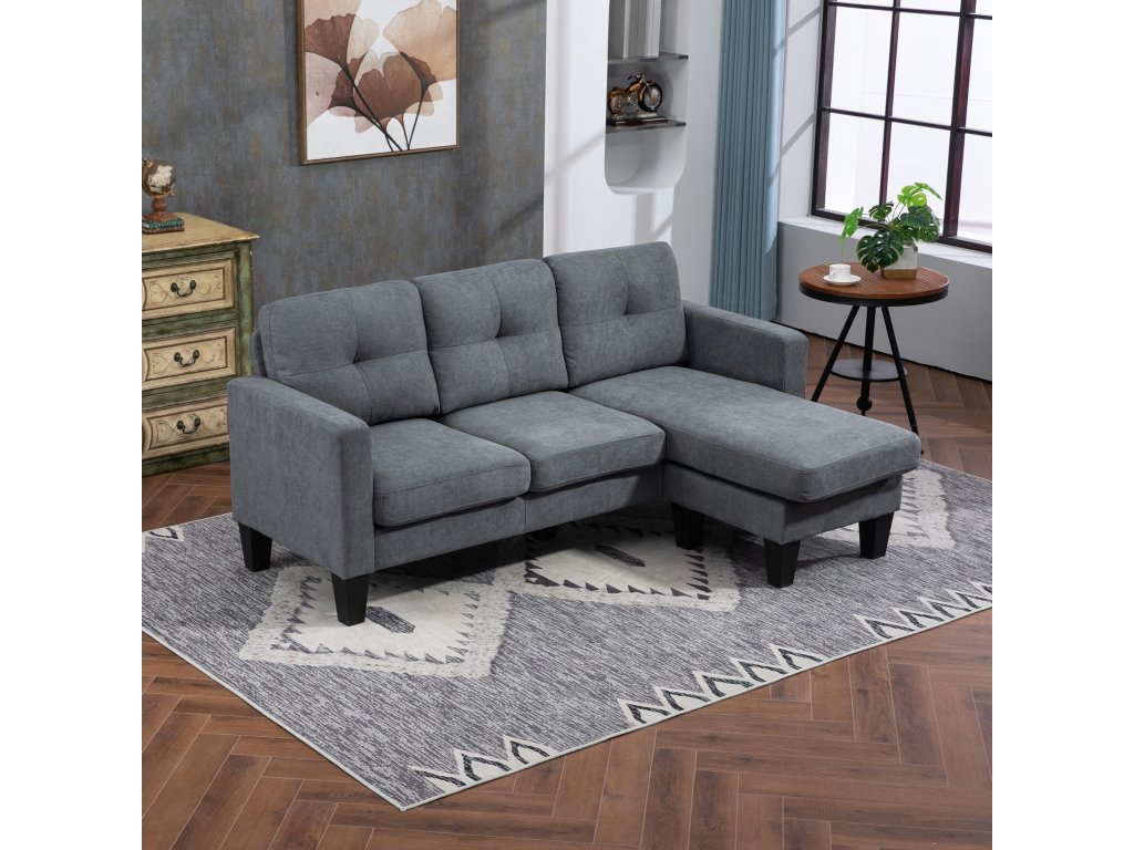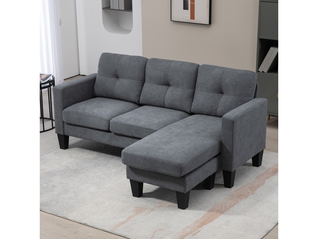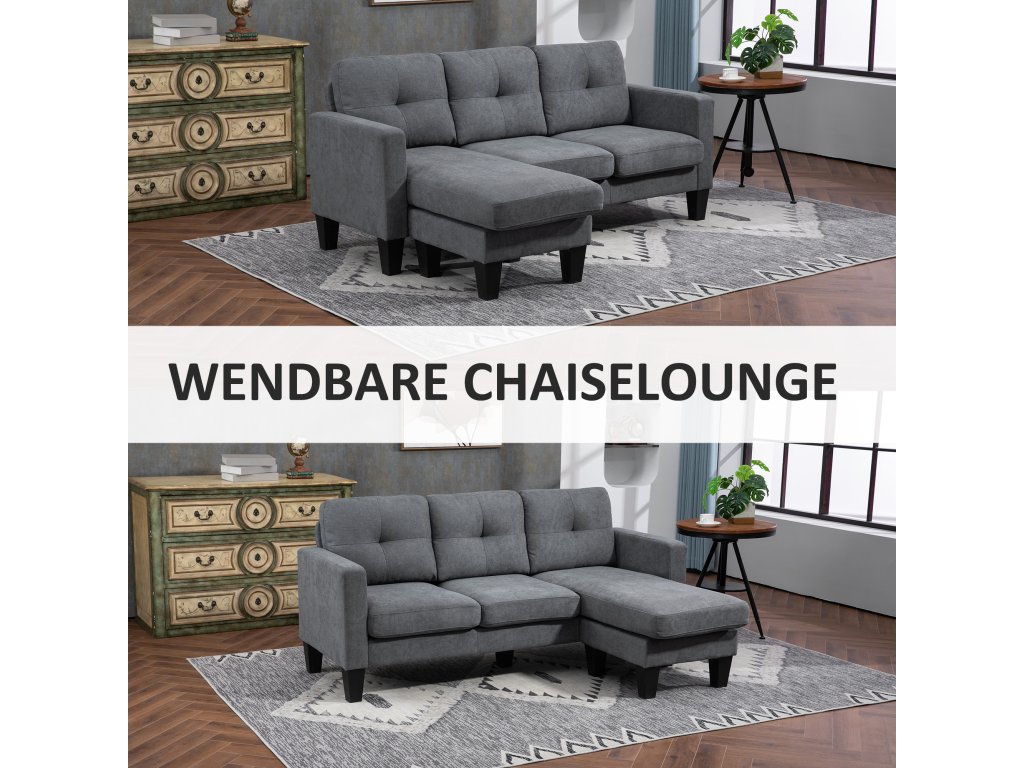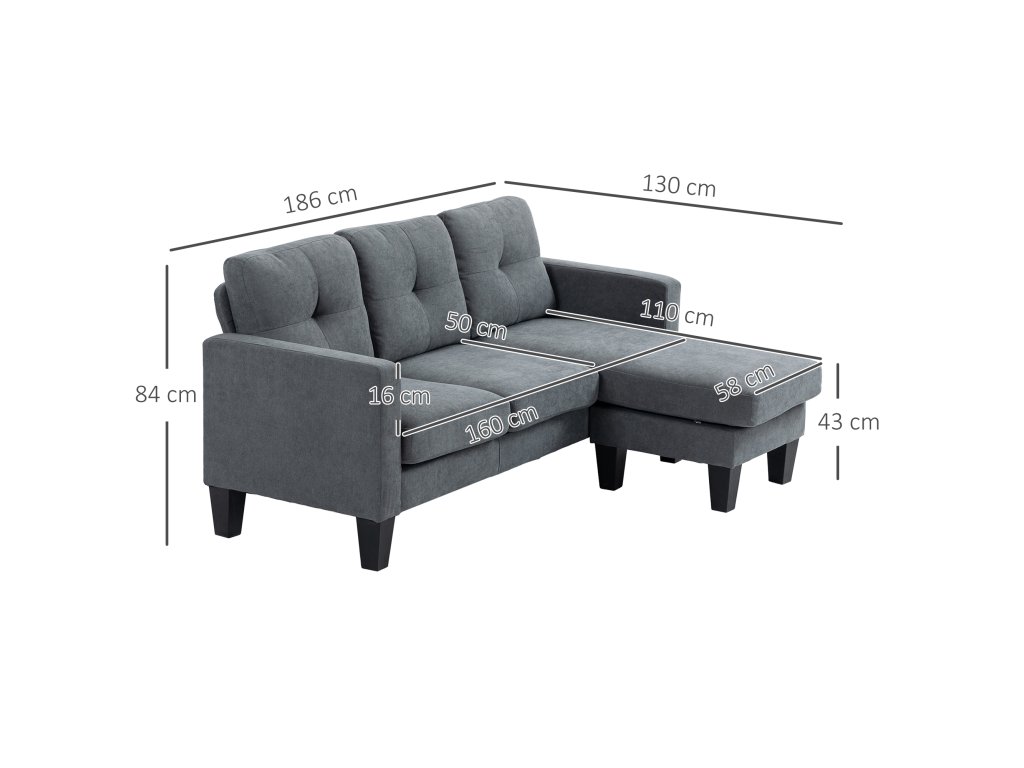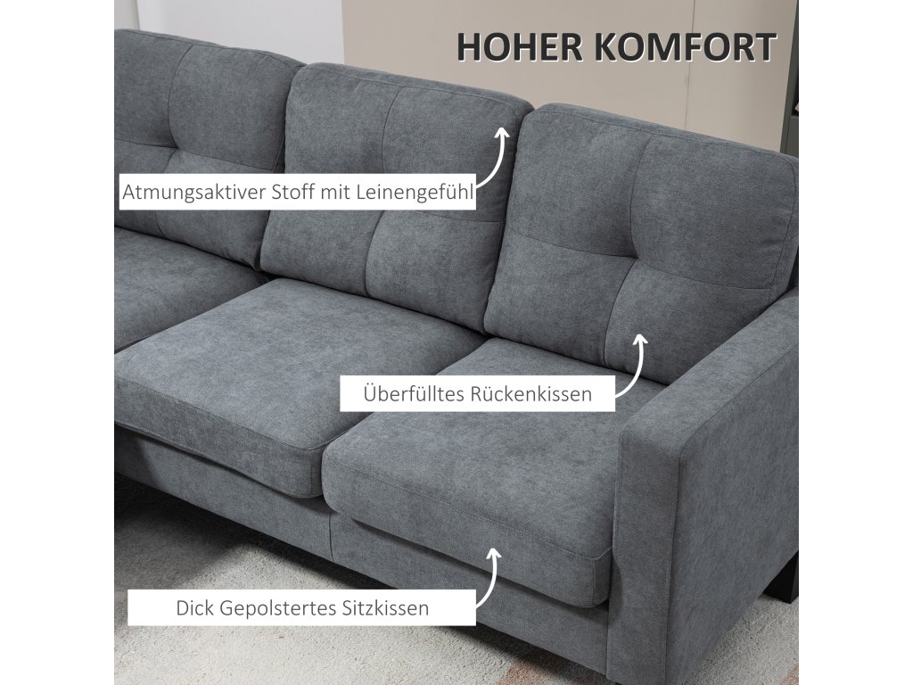 HOMCOM rohová sedací souprava ve tvaru L, lehátko, které lze připevnit na obě strany, čalouněná sedací souprava, tmavě šedá barva