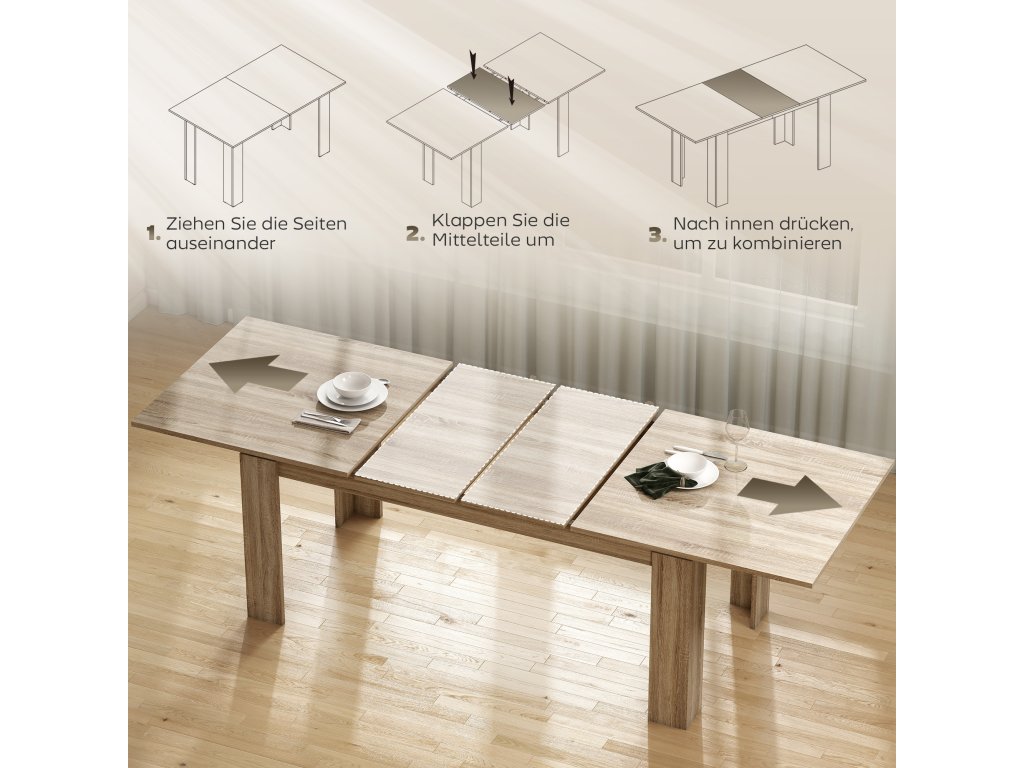 - ✔ Jednoduše posuňte boční desky a sklopte střed, čímž se prodlouží ze 180 cm na 260 cm