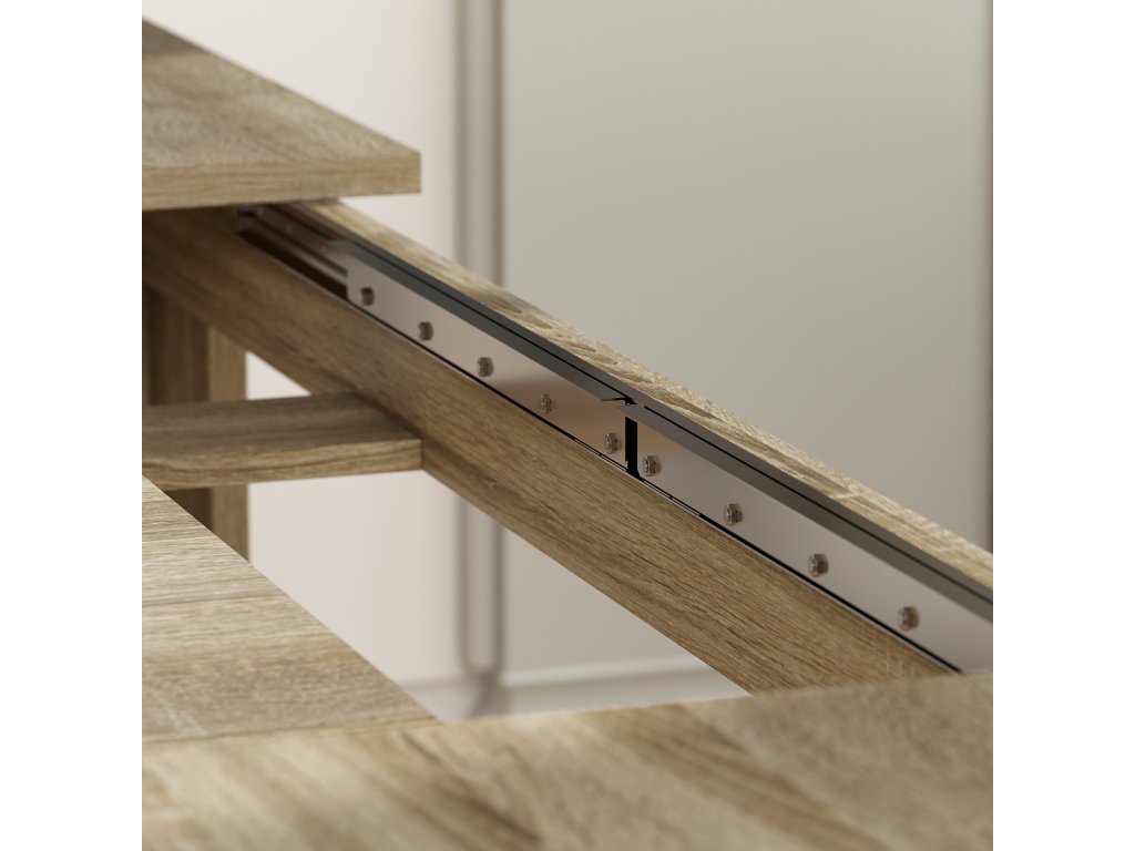 - Prostorově úsporná konstrukce: Nepotřebujete žádný další úložný prostor! Integrované prodlužovací listy tohoto rozkládacího kuchyňského stolu neviditelně zmizí pod deskou stolu, čímž zachovají elegantní a uklizený vzhled vaší jídelny.