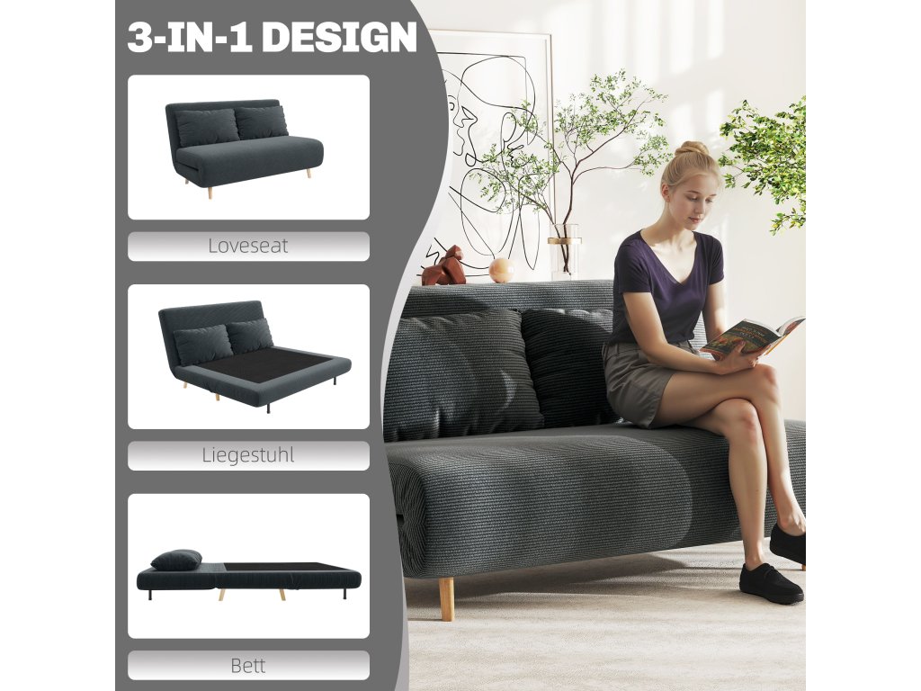 Proměňte svůj obývací prostor ve stylovou oázu pohodlí s rozkládací pohovkou HOMCOM! Tento všestranný kus nábytku je díky svému hustému čalounění ideálním místem pro odpočinek během dne a v noci se bez námahy promění v pohodlné dvoulůžko. Díky svému modernímu designu se rozkládací pohovka bez problémů hodí do každého interiéru a nabízí elegantní řešení pro vaše hosty. Užijte si funkčnost a styl s touto praktickou rozkládací pohovkou!