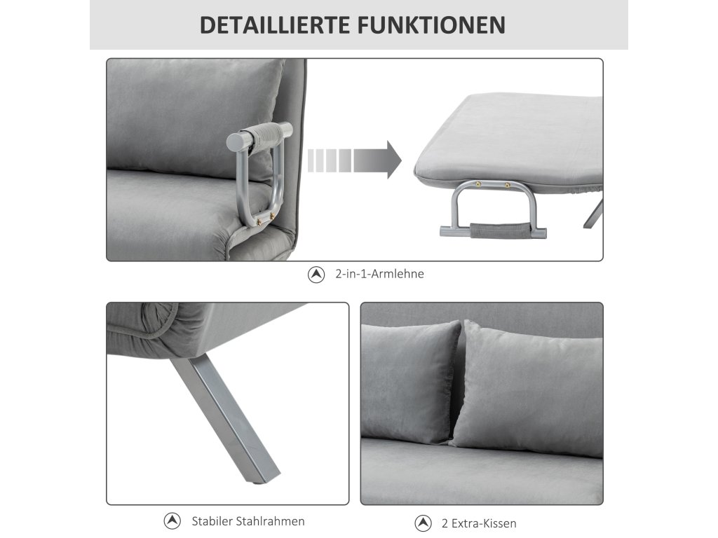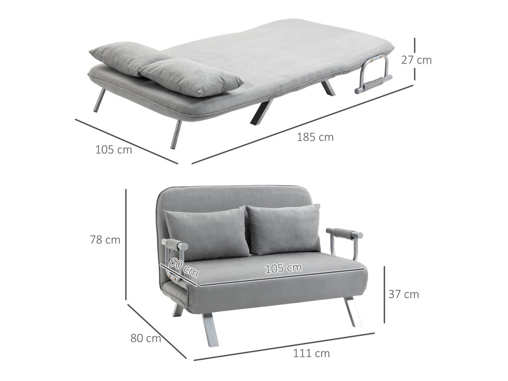 Objevte dokonalý zážitek z pohodlí s 2místnou pohovkou HOMCOM s funkcí spánku! Tento všestranný kus nábytku se v mžiku oka promění z elegantní pohovky v útulné lůžko - ideální pro spontánní zdřímnutí nebo přespání hostů. Kvalitní kovový rám rozkládací pohovky s práškovým nástřikem zajišťuje stabilitu, zatímco sametový potah a měkké polstrování poskytují luxusní pohodlí. Snímatelný látkový potah umožňuje snadné čištění.