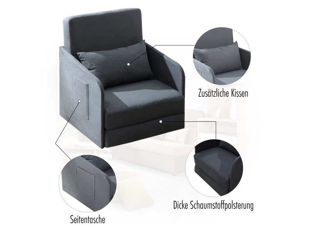 - Pohodlí: Díky 15 cm silné pěně a polštáři o rozměrech 60 x 35 cm je funkční křeslo opravdu pohodlné při sezení i ležení.