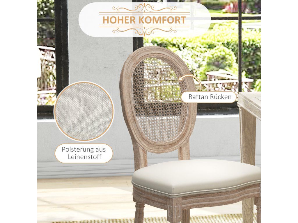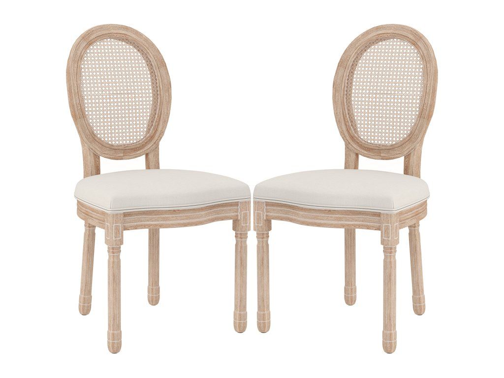 HOMCOM Sada 2 jídelních židlí Kuchyňské židle, vintage design, proutěný vzhled, přírodní + krémová barva