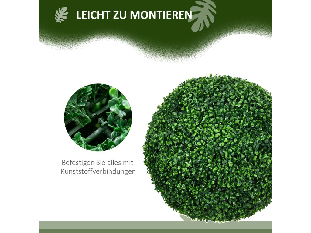 HOMCOM Sada 2 koulí zimostrázu, umělé rostliny, pokojová rostlina s UV ochranou, dekorativní rostlina, pro interiér, exteriér, zelená