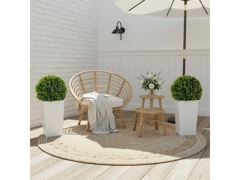 - Materiál odolný proti UV záření: Naše umělé rostliny jsou vyrobeny z plastu s UV ochranou a odolávají vyblednutí vlivem slunečního záření. Ať už na slunném balkoně nebo v interiéru, zachovají si svou zářivě zelenou barvu po celé roční období.
