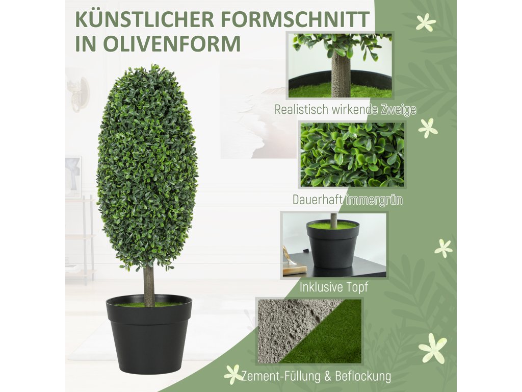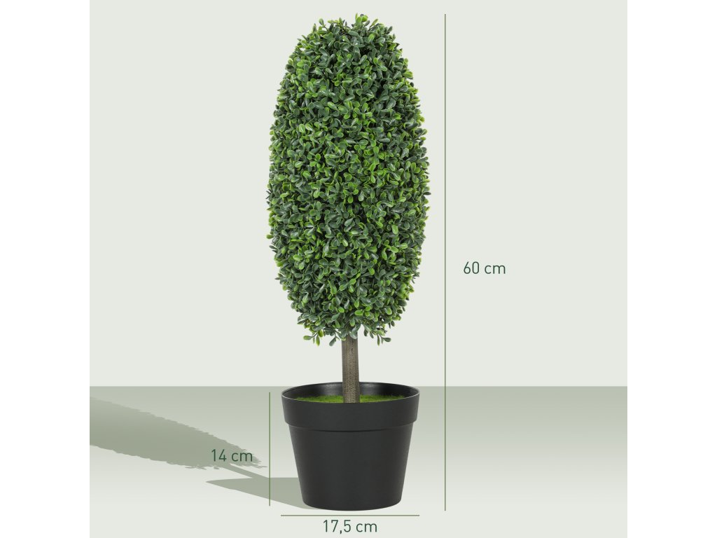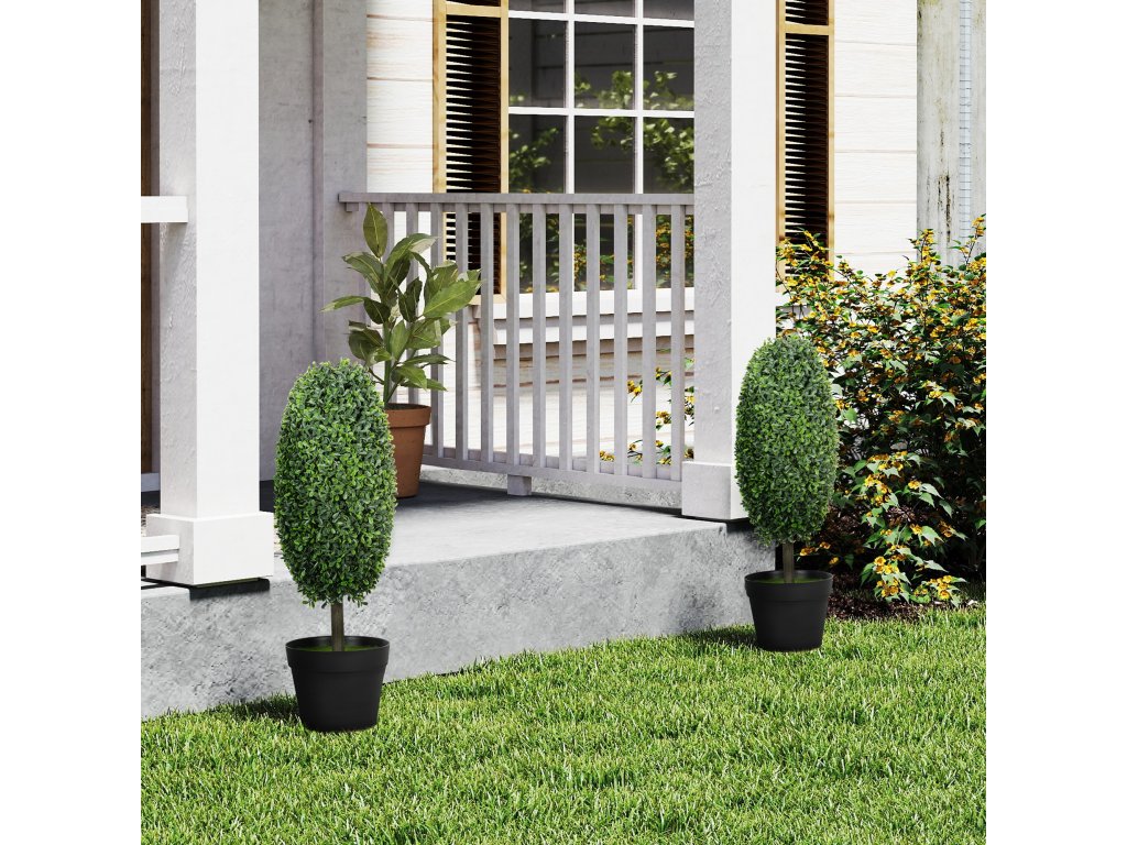 HOMCOM Sada 2 umělých rostlin, umělé stromy v květináčích, odolné proti UV záření, plast, cement, zelená barva