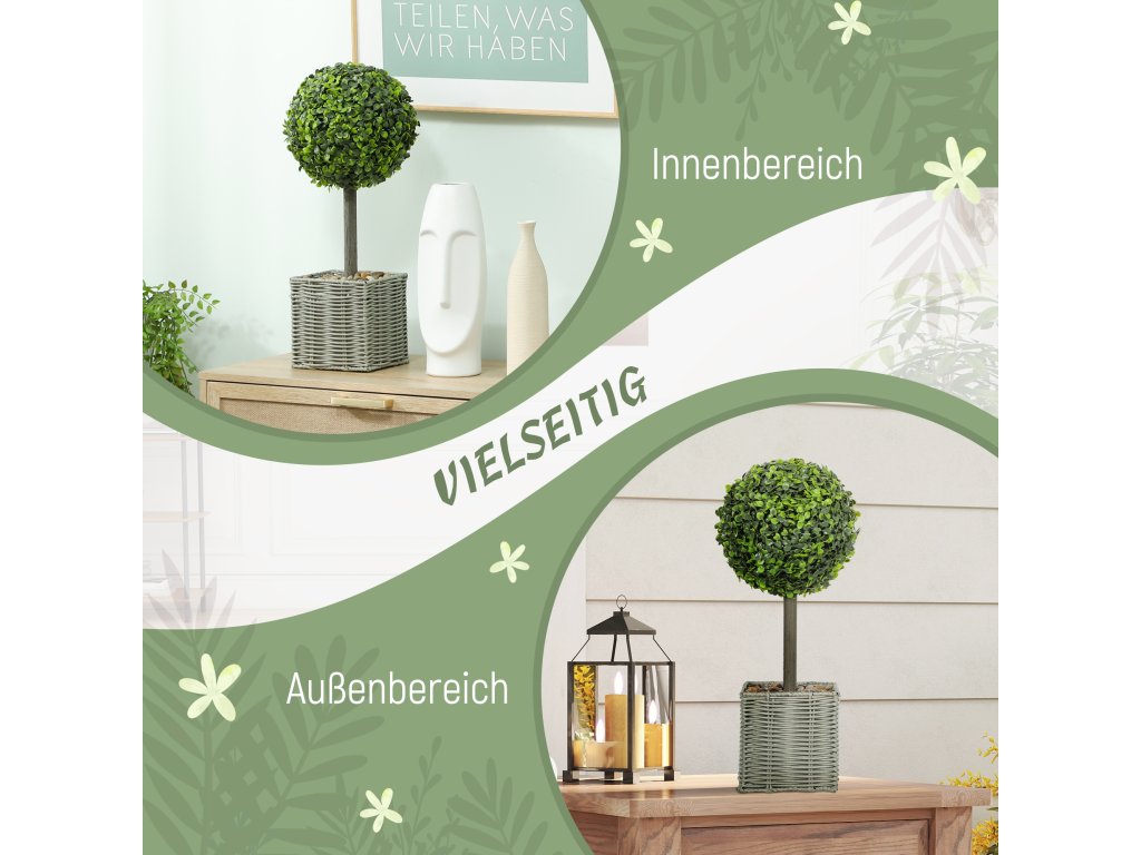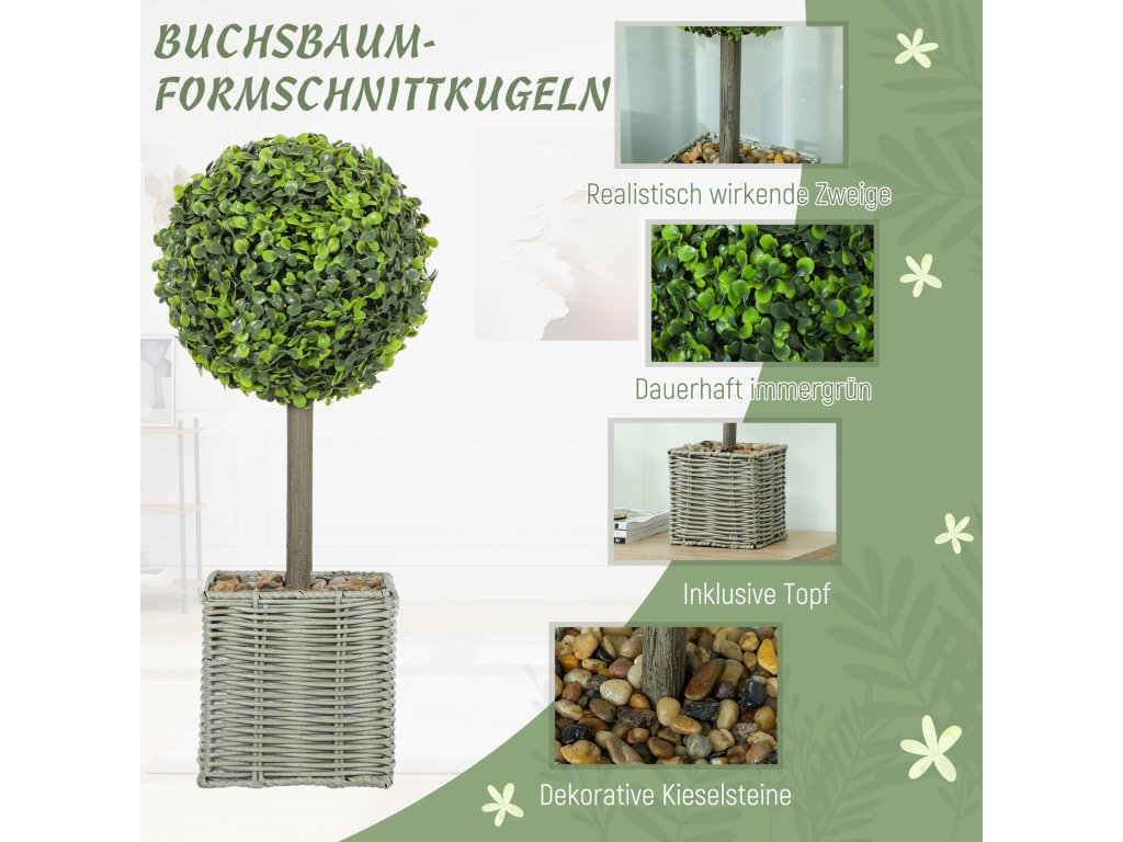 - Přírodní kouzlo pro každou místnost: Dodejte svému domovu nebo kanceláři přírodní nádech s touto sadou dvou umělých koulí zimostrázu, z nichž každá má 204 listů. Jsou zasazeny v tkaných květináčích a ozdobeny dekorativními oblázky a dodají každému prostředí osvěžující a uklidňující atmosféru