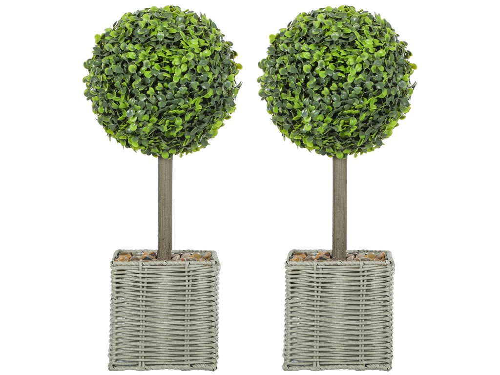 HOMCOM Sada 2 umělých rostlin, umělé stromy v květináčích, odolné proti UV záření, vhodné do interiéru i exteriéru, plast, cement, zelená barva